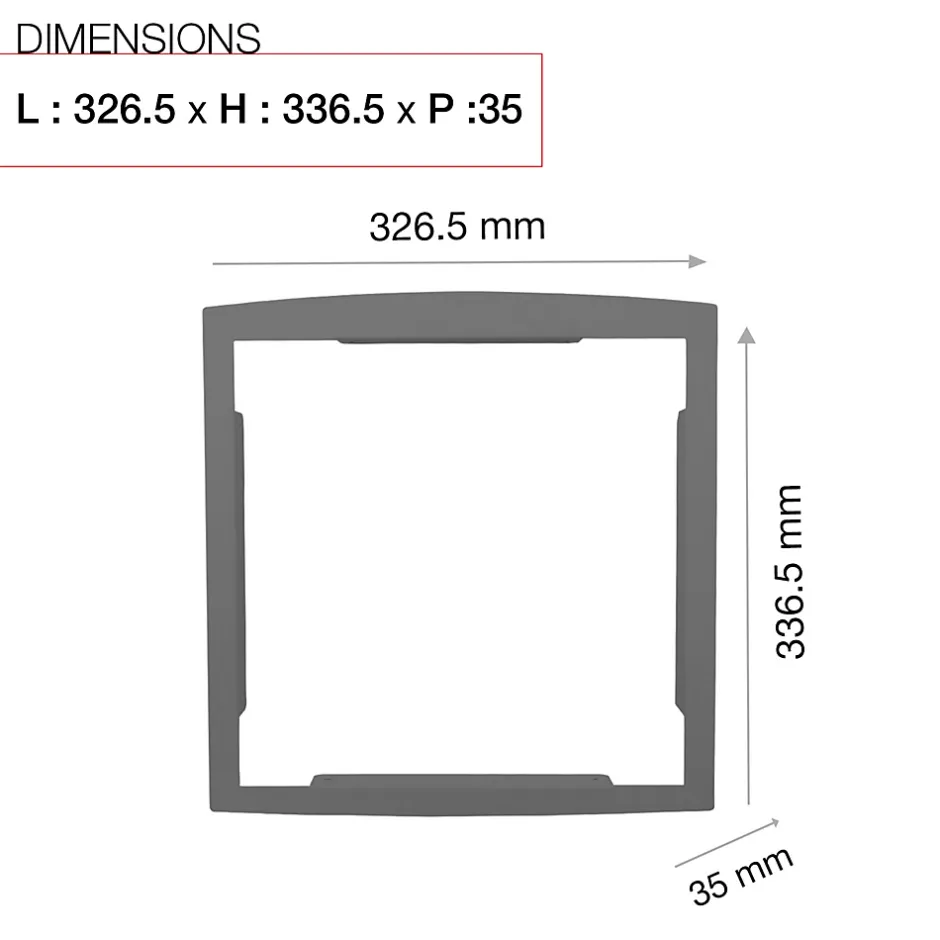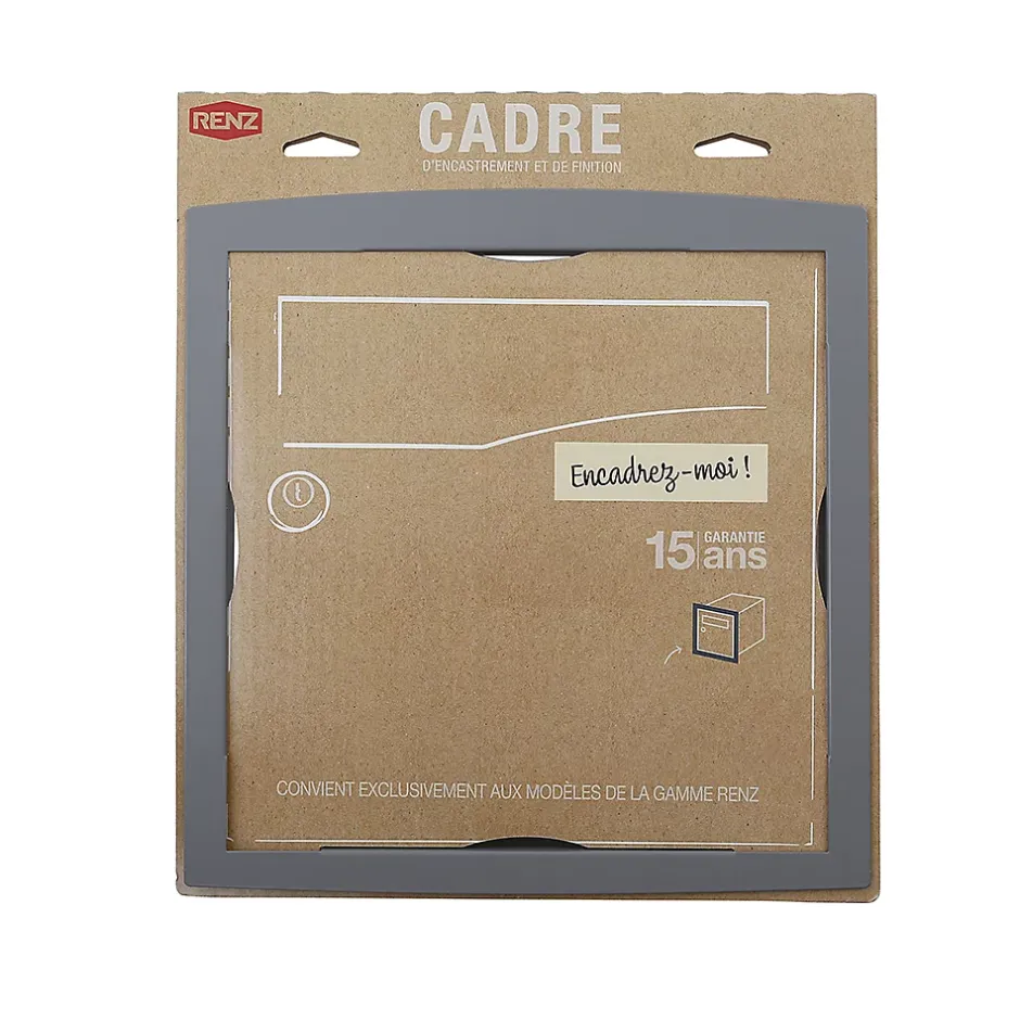 Cadre d’encastrement et de finition Renz de 326,5×336,5x35mm pour une intégration à fleur dans le pilier et un meilleur rendu esthétique. Livré avec visserie permettant la pose du cadre sur la boite aux lettres. Discret et facile à poser. Coloris assorti à la boite aux lettres. Visserie fournie permettant la pose de la boîte aux lettres sur le cadre. Garantie anti-corrosion de 15 ans.Pour un encastrement propre et élégant de votre boite aux lettres, choisissez le cadre d’encastrement RENZ. Discret et assorti à la couleur de votre boite aux lettres, il offre un meilleur rendu esthétique et de parfaites finitions. Facile à installer, ce cadre bénéficie d’une garantie anti-corrosion de 15 ans.Photos non contractuelles, se référer au RAL pour le coloris.