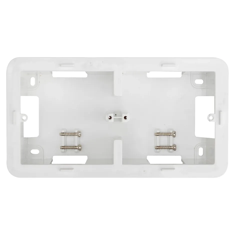 Boîte à combiner avec 2 produits maximum de la gamme modulaire Espen pour créer un équipement encastrable. Installation avec vis (incluses).