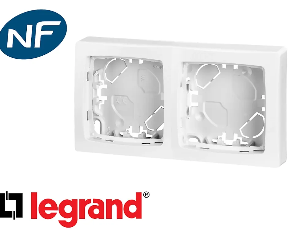 - Cadre saillie 2 postes LEGRAND ASL en thermoplastique blanc mat, pour rénovation, montage horizontal ou vertical.