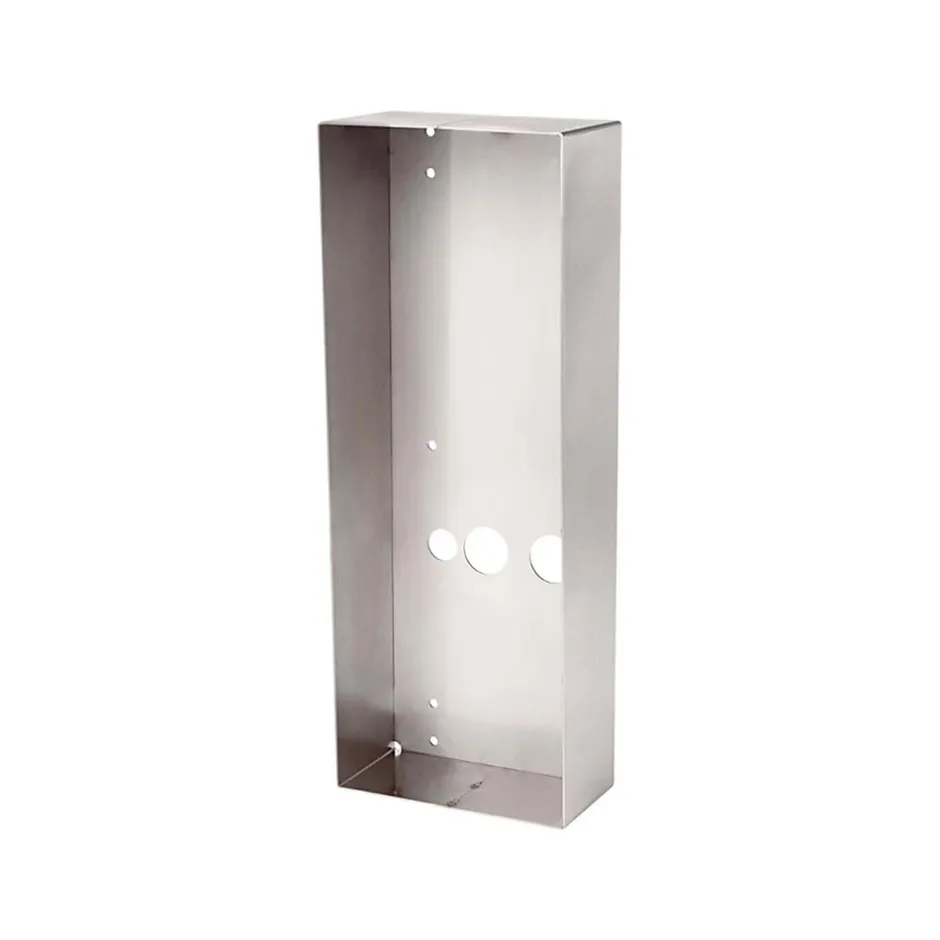 Cadre saillie inox avec visière – AIP/CSJPDVFLBM – AIPHONELe cadre saillie inox avec visière garantit une fixation sûre de votre platine vidéo d’accessibilité sur le support. Grâce à la visière intégrée qui protège l’écran, vous disposez d’une visibilité optimale. Fabriqué en acier inoxydable de 2 mm d’épaisseur, ce cadre AIP/CSJPDVFLBM offre une résistance exceptionnelle aux intempéries et aux agressions extérieures, assurant ainsi une longue durée de vie à votre installation. Ce modèle fabriqué par AIPHONE est compatible avec les platines vidéo JPDVFLBM, IXDVFCVBM et IXBAFCVBM, ce qui en fait un choix polyvalent pour diverses applications.Caractéristiques principales :Cadre saillie en inox 2 mm pour platine vidéo accessibilitéCompatible avec JPDVFLBM, IXDVFCVBM & IXBAFCVBMAvec visière
