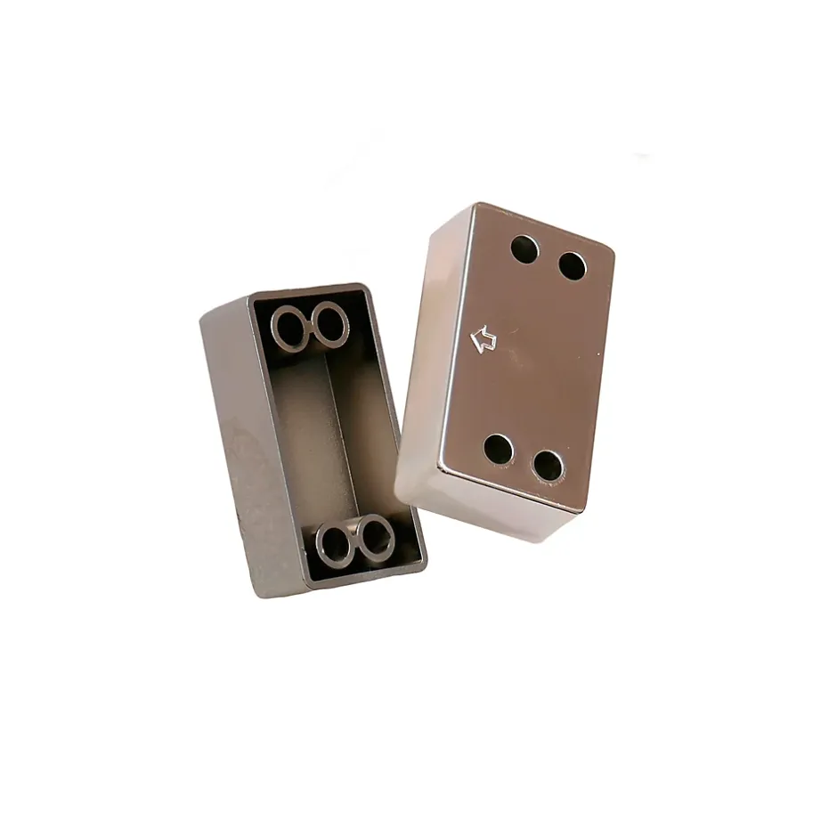 Cale pour crochet standard, pour frein de rétention tous modèles, pour porte a recouvrement du cadre, d’épaisseur maximum de 10 a 27 mm en ABS finition chrome.