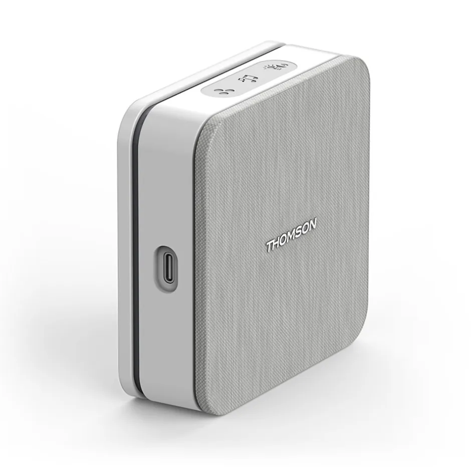 Optez pour la technologie kinéticAvec la technologie Kinétic, le bouton d’appel fonctionne grâce à l’énergie mécanique de l’appui qui crée une énergie éléctrique suffisante déclanchant la sonnerie du carillon. Plus économe et plus facile à installer, acceuillez vos visiteurs avec le nouveau carillon Thomson ! Une mise en place rapide et simpleLe bouton d’appel se fixe à l’extérieur de votre domicile avec une distance pouvant aller jusqu’à 150 mètres, en champ libre, entre le bouton et le carillon.Grâce à sa batterie rechargeable, le carillon se pose ou se fixe chez vous. Son design moderne et sobre s’adapte parfaitement à votre intérieur.Un mode d’accueil personnalisableCe carillon Thomson vous laisse le choix entre 7 sonneries d’accueil pouvant sonner à 5 niveaux sonores différents pour une alerte agréable au quotidien.Avec son flash LED lumineux disponible en 6 couleurs, optez pour celle de votre choix afin d’être en harmonie avec votre intérieur.Les autres fonctionnalités confortablesProgrammez le mode nuit en coupant le son de votre carillon, pratique pour s’épargner un réveil en pleine nuit ! Lorsque ce mode nocturne est activé, le son est éteint pour une durée de 3, 6 ou 9 heures. Cette solution d’accueil est évolutive de part les ajouts de 3 carillons et 3 boutons poussoirs supplémentaires pour en avoir 4 de chaque au total.Rechargez votre carillon avec un câble USB-C (non fourni)Le contenu du kitCe kit comprend :1 carillon sur batterie rechargeable par USB-C1 bouton d’appel kinéticLa visserie<p style= »text-align:ju