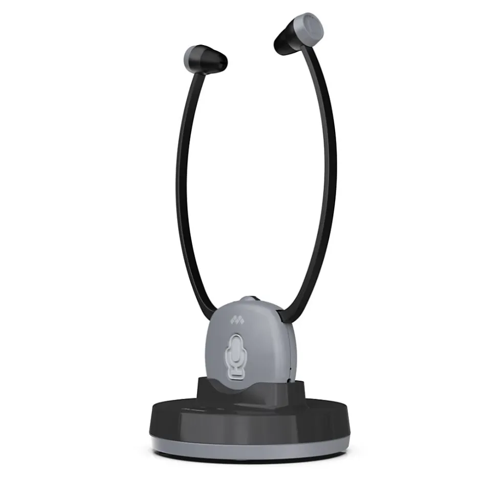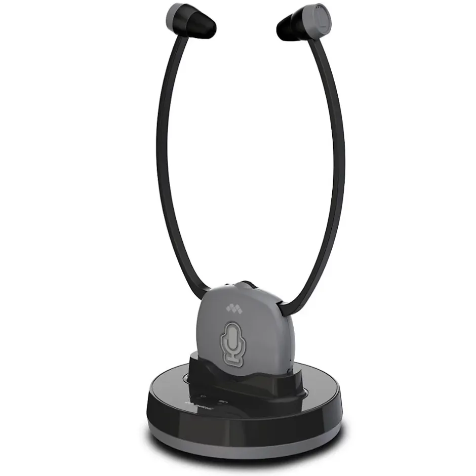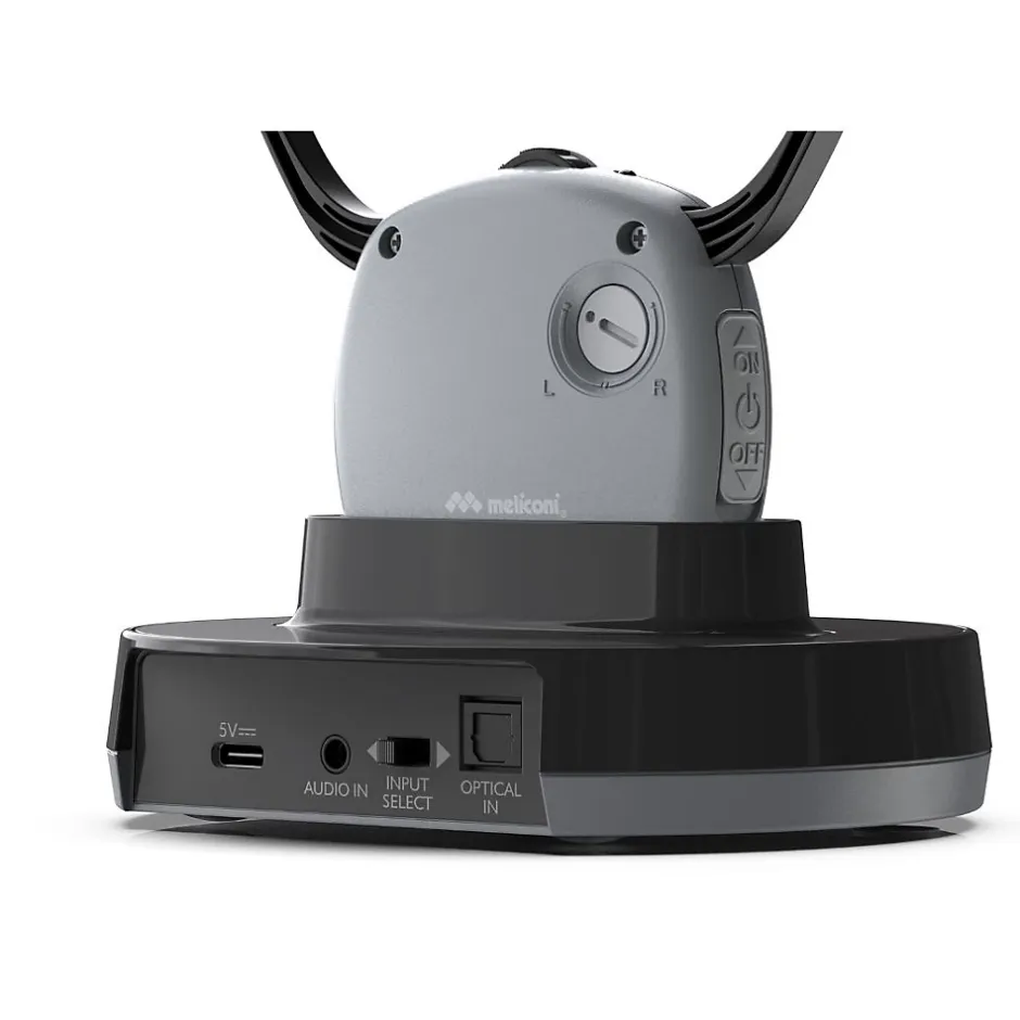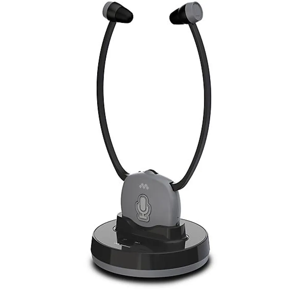 Casque TV sans fil avec transmission numérique du signal (2.4GHz) qui permet une liberté totale de mouvement (jusqu’à 20m du téléviseur). Excellente qualité sonore et stabilité optimale du signal. Rayon de réception jusqu’à 20 m maximum, en champ libre.Grâce à la base de rangement et de chargement, le casque est toujours prêt. Il est léger et confortable avec des embouts d’écouteurs en siliconeRetransmission audio stéréo sans interférence (en conditions optimales).Connexion rapide à un téléviseur, smartphone, décodeur, lecteur DVD, Blu-ray et autres sources audio analogiques et numériques.Station d’accueil pour ranger et recharger le casque après utilisation.Contrôle du volume et de la balance du son (sur le casque).Déconnexion automatique en l’absence de signal audio.Microphone interne : appuyer sur le bouton MIC permet de couper le son de l’entrée audio connectée et d’activer l’écoute amplifiée pour entendre les voix et les sons environnants. (idéal pour les seniors et malentendants)Une charge complète d’une durée de 3h permet une utilisation d’environ 15 heures