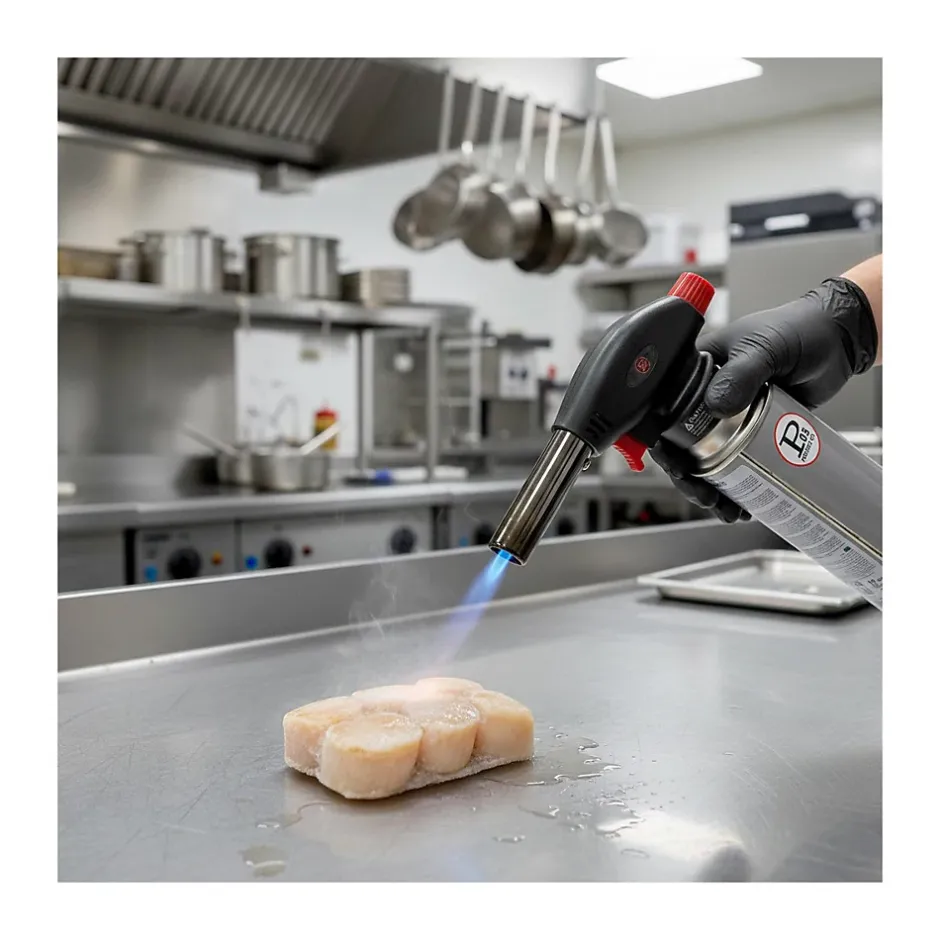 Le chalumeau cuisine FLAMBY MIDI est un bruleur professionnel à cartouche pensé pour : chefs, pâtissiers, traiteurs, bricoleurs et techniciens recherchant une flamme puissante, stable et réglable. Ce chalumeau gaz offre un allumage piézo automatique, une montée en température rapide jusqu’à 1500°C et un contrôle précis grâce à sa molette de réglage.Idéal pour caraméliser une crème brûlée, saisir une viande, faire fondre du fromage, décongeler rapidement ou réaliser de petits travaux techniques, le chalumeau gaz fonctionne avec des cartouches gaz 227g, largement répandues et faciles à trouver. Sa conception robuste et compacte (17 cm) permet une prise en main confortable et une utilisation intensive, en cuisine professionnelle comme en atelier.Polyvalent, performant et toujours prêt à l’emploi, le bruleur à gaz répond aux besoins des passionnés de gastronomie comme des artisans recherchant un chalumeau fiable à haute température.Points forts- Flamme réglable haute précision : contrôle optimal de la température jusqu’à 1500°C- Allumage piézo automatique : démarrage instantané, sans briquet- Polyvalence cuisine & bricolage : caramélisation, saisie, soudure légère, décongélation- Compatible cartouche gaz 227g type coréen : autonomie pratique et recharges facilesCaractéristiques : – Compatible : cartouches butane 227 gr- Puissance : 180W – Consommation : 13.1 gr/h- Allumage : Automatique Piezo- Flamme réglable- Température max : 1500 °C- Dimensions : 17 x 5 x 6.5 cm- Poids : 175 gr