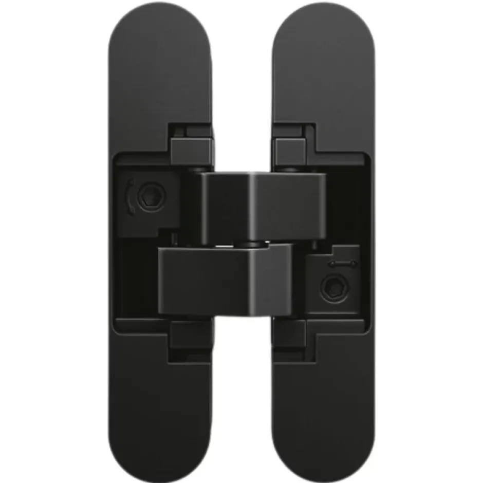 Charnière porte invisible – Réglable & Reversible– Noir mat Apportez une touche de modernité et de discrétion à vos aménagements avec cette charnière invisible en zamac noire, à la fois réglable et réversible. Sa conception robuste et son design minimaliste en font un choix idéal pour des portes affleurantes, des meubles contemporains ou des installations où l’esthétique prime. Comment la régler ? Le réglage est très simple et se fait par clé allène.Il suffit de desserrer les 4 vis de chaque charnière puis monter ou descendre la porte à la hauteur souhaiter, puis de resserer les vis.1 charnière peut supporter jusqu’à 20Kg. Caractéristiques :Matière : ZamacFinition : MatCouleur : NoirDimensions : Lame 110mm H x 24mm de l d’un côté et 30mm de l’autre Largeur de la paumelle ouverte à plat : 67.7mmPour portes d’épaisseur : 40mm d’épaisseur, 900 mm maximum de largeur, et 2000 mm maximum de hauteur. Le colis comprend :1 charnière invisible Les points forts :✔ Robuste✔ Invisible✔ Made in Italy Découvrez également notre sélection de mobiliers et décorations sur le site.