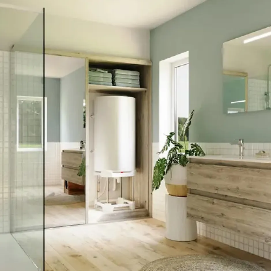 Bajawa est un chauffe-eau simple et résistant, grâce à son anode titane inusable, il protège de la corrosion en permanence. Son thermostat électronique vous garantit une fiabilité de la température.Bajawa, c’est de l’eau chaude en toute simplicité. Avec ses plaques de fixation incluses, la pose est rapide et sans efforts. Son format compact permet une intégration simple dans les espaces de faible hauteurs.Son entretien facile est garanti grâce à une protection de cuve active et inusable. La résistance est protégée du tartre à l’intérieur d’un fourreau et simple à remplacer.LES + DU PRODUIT :RÉSISTANT* Anode à courant imposé pour une protection anti-corrosion durable* Une résistance protégée du tartreUN MINIMUM D’ENTRETIEN* Une résistance à l’intérieur d’un fourreau: simple à remplacer* Protection de cuve inusableSIMPLE À INSTALLER ET À UTILISER* Fonctionnement autonome : ne nécessite aucun réglage* Idéal en rénovation : s’adapte aux fixations de votre ancien chauffe-eau* Un seul étrier : fixation rapideCARACTÉRISTIQUES TECHNIQUES :* Puissance : 1 800* Capacité (l) : 150* Classe énergétique : C* Profondeur (mm) : 585* Hauteur ou largeur (pour HZ) (en mm) : 990* Diamètre (en mm) ou largeur (sur évier) : 567* Poids (kg) : 39* Poids rempli (kg) : 189* Couleur : Blanc* Technologie : Electrique* Nombre de personnes au foyer : Jusqu’à 2 adultes et 1 enfant* Accessoires fournis : Raccord di-électrique* Accessoires d’aide à la pose en option : Trépied, console d’accrochage au plafond, pattes de fixation universelles.* Commentaire : Si votre mur est non porteur, prévoyez en plus un trépied universel ou une console d’accrochage au plafond. Pour choisir la bonne fixation, veuillez-vous rapporter à votre notice.* Aide au diagnostic de pannes : non* Distance étrier sup- haut CE : 235* Entraxe étrier (en mm) : 500* Gabarit de pose : Fourni sur …