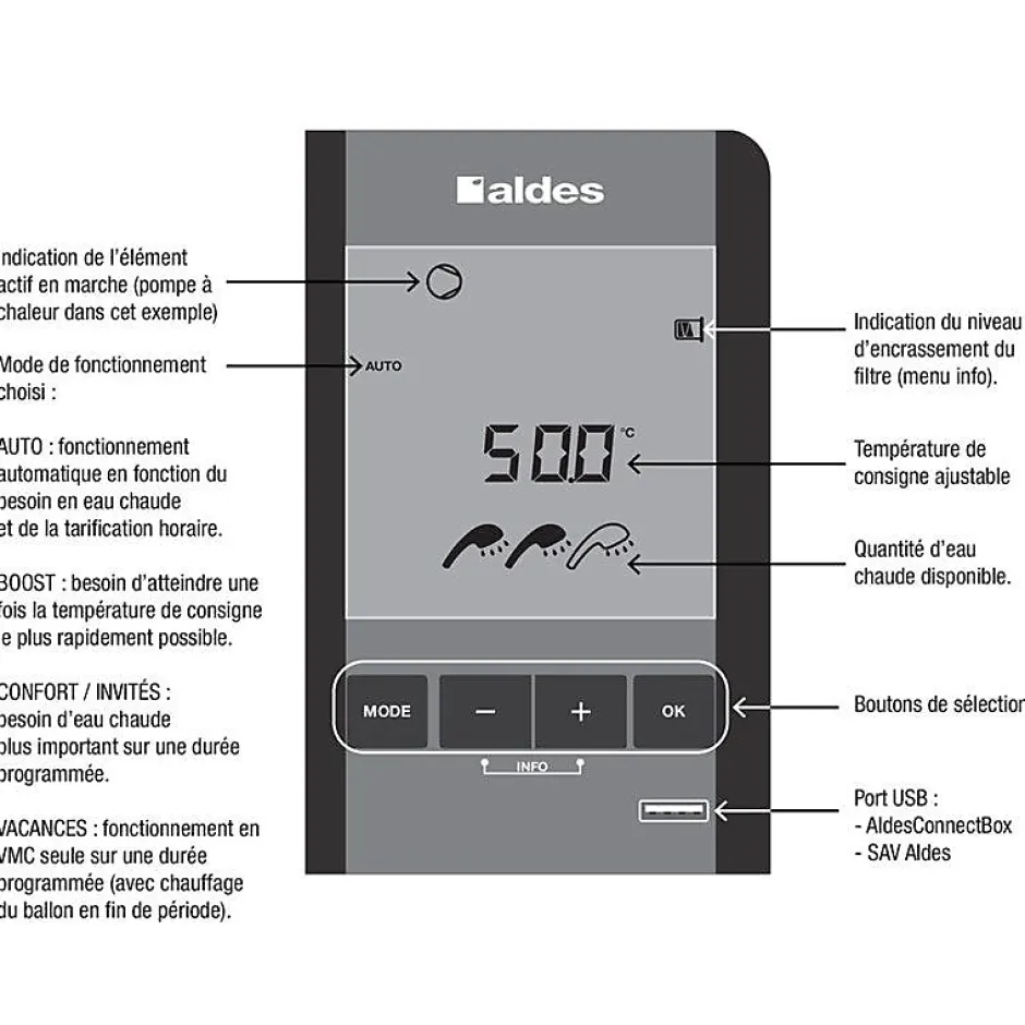 Le chauffe-eau thermodynamique B200-FAN T.Flow Hygro+ est une solution complète pensée pour améliorer votre confort tout en réduisant vos consommations énergétiques. Grâce à son fonctionnement sur air extrait, il récupère les calories présentes dans l’air pour produire de l’eau chaude, ce qui permet de réaliser jusqu’à 73 % d’économies par rapport à un chauffe-eau classique.Avec sa capacité à produire jusqu’à 600 litres d’eau chaude par jour, il répond parfaitement aux besoins d’un foyer familial, même en cas d’utilisation intensive. Vous bénéficiez d’une eau chaude disponible en continu, sans compromis sur le confort. Son fonctionnement silencieux en fait un équipement discret au quotidien, idéal pour une installation dans les espaces de vie. Les différents modes de fonctionnement permettent d’adapter facilement l’appareil à votre rythme de vie, que ce soit pour optimiser la consommation, anticiper des besoins ponctuels ou réduire l’activité en cas d’absence.Grâce à sa compatibilité avec plusieurs systèmes de chauffage et de ventilation, il s’intègre facilement dans votre installation existante. La possibilité de pilotage à distance via l’application AldesConnect offre un confort d’utilisation supplémentaire, avec un contrôle simplifié et un suivi précis de vos consommations. Fiable, économique et performant, ce chauffe-eau est une solution durable pour améliorer votre confort tout en maîtrisant votre budget énergie.