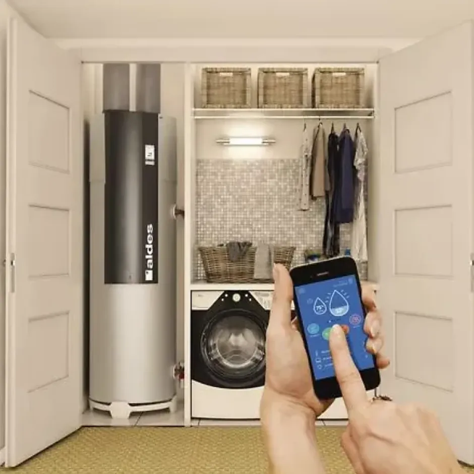 Le chauffe-eau thermodynamique B200-FAN T.Flow Hygro+ Connecté vous permet de combiner confort, économies et simplicité d’utilisation au quotidien. Grâce à son fonctionnement sur air extrait, il récupère les calories présentes dans l’air pour produire votre eau chaude, réduisant considérablement votre consommation d’énergie. Avec une capacité de production allant jusqu’à 600 litres d’eau chaude par jour, il répond parfaitement aux besoins d’une famille, même en cas d’utilisation intensive. Vous profitez d’une eau chaude disponible en continu, sans compromis sur le confort.Sa grande force réside dans sa connectivité intégrée. Grâce au modem AldesConnect fourni, vous pouvez piloter votre appareil à distance depuis votre smartphone, ajuster les réglages, suivre vos consommations et optimiser votre utilisation en fonction de votre mode de vie. Son fonctionnement silencieux permet une installation discrète, même dans des espaces proches des pièces de vie. Les différents modes disponibles s’adaptent à toutes les situations : optimisation des économies, gestion des absences ou besoins ponctuels plus importants.Facile à intégrer dans votre installation existante et compatible avec plusieurs systèmes, ce chauffe-eau représente une solution moderne, performante et durable pour améliorer votre confort tout en maîtrisant votre budget énergétique.