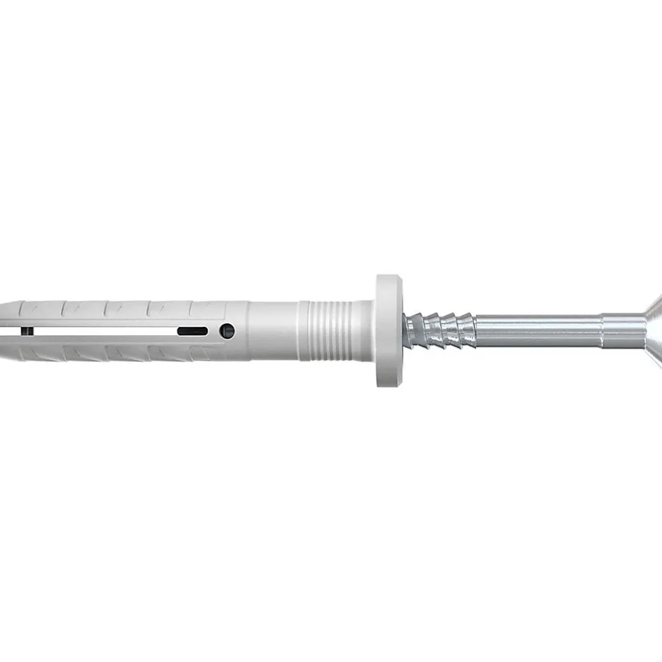 Cheville à frapper N-F avec tête plate, prémontée pour une pose rapide, composée d’une cheville nylon et d’un clou en acier électrozingué. S’expanse lors de l’enfoncement du clou pour une ancre sûre dans tous les matériaux de construction en intérieur, idéale pour la fixation de structures métalliques et le montage traversant.