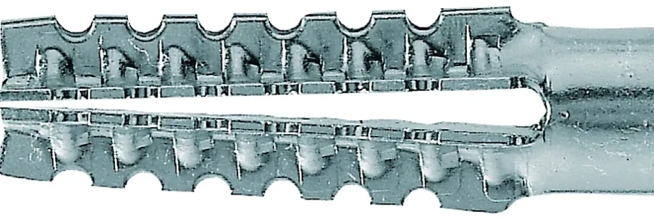 - La dentelure extérieure s’expanse dans le matériau support et garantit une résistance élevée.