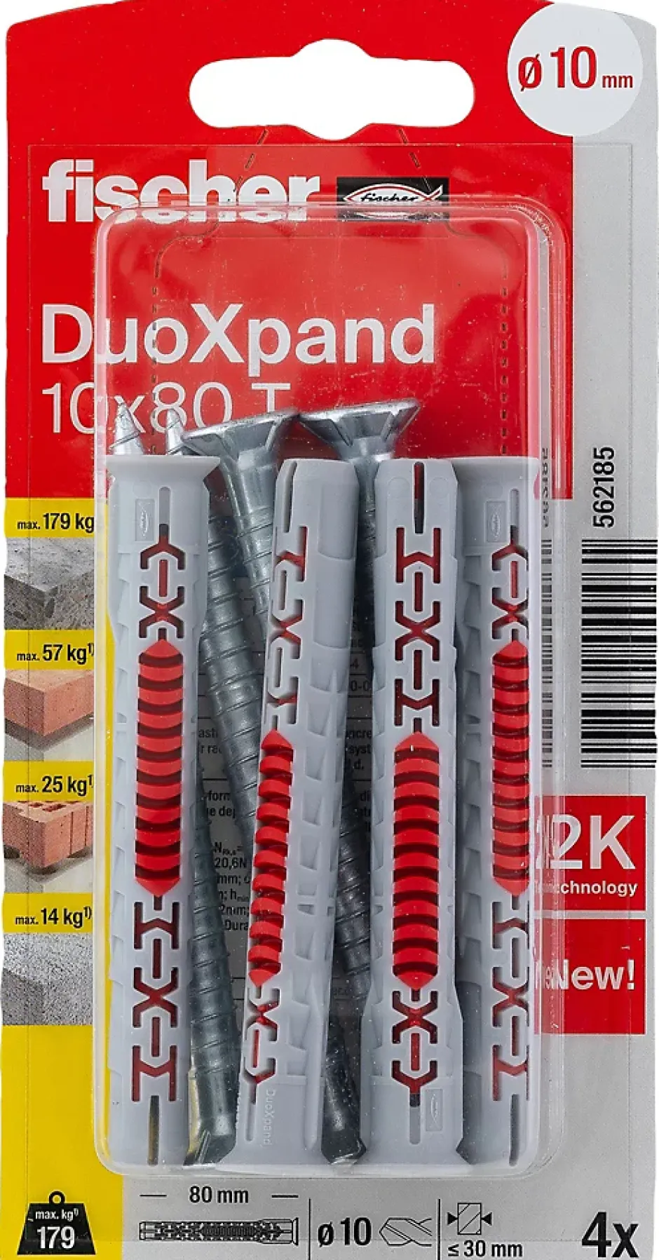Cheville rallongée Fischer DuoXpand 10 x 80 mm, 4 pièces