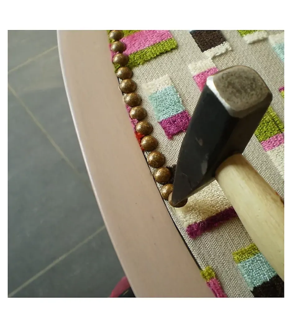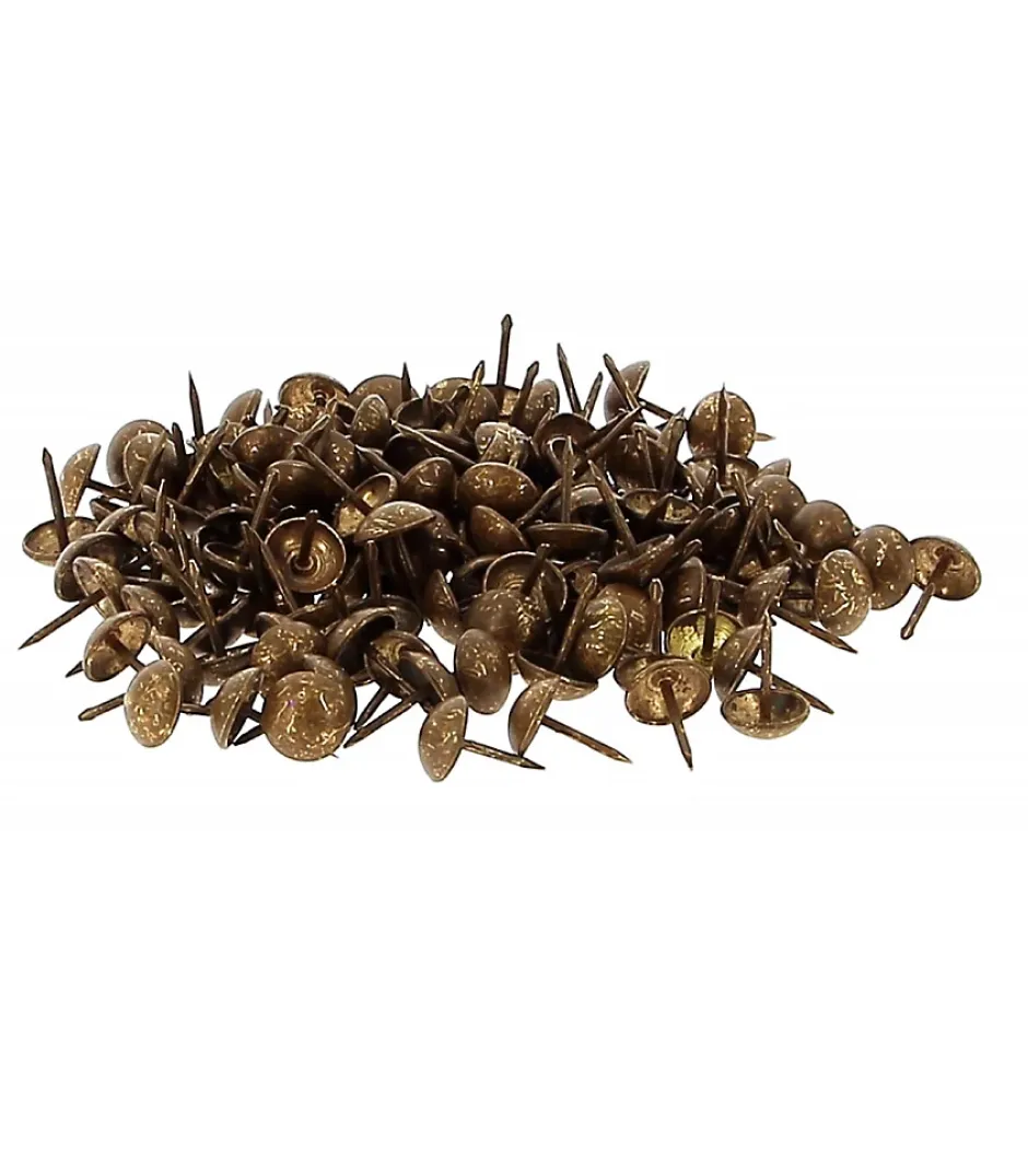 Clous Ronds d’Ameublement Décoratifs – Lot de 150 – Ø11 mm – TapissierAuthenticité et Finition Brillante pour Vos Projets d’AmeublementCet ensemble de clous Ronds d’ameublement est l’accessoire idéal pour ajouter de l’authenticité et du cachet à vos meubles de style. Chaque clou possède une tête de 11 mm de diamètre et une tige de 15 mm, taille moyenne parfaite pour la finition. Vous ne serez pas déçu par leur finition, ils resteront toujours brillants et beaux.Le Conseil de Notre Tapissier :Ce lot contient environ 150 clous, idéal pour les petites finitions, les échantillons ou les projets de détail. Pour refaire entièrement un fauteuil type Crapaud, comptez entre 250 et 300 clous. Pour une pose parfaitement régulière et professionnelle, l’utilisation d’un guide-clous est fortement recommandée.Conseil d’Entretien :Pour préserver la finition et l’éclat de la surface des clous, veuillez simplement les nettoyer avec un chiffon sec. Ne pas utiliser de produits chimiques, car cela pourrait endommager la finition de la surface avec le temps.Caractéristiques TechniquesType de Produit : Clous ronds décoratifs d’ameublementQuantité : Lot de 150 clous environsPoids du lot : 150 grammesDiamètre de la tête (Largeur) : 11 mmLongueur de la tige (Hauteur) : 15 mmUtilisation : Ameublement, réfection de sièges (ex : Fauteuil Crapaud)Ajoutez la touche décorative finale à vos meubles. Commandez votre lot de 150 clous décoratifs Ø11 mm.