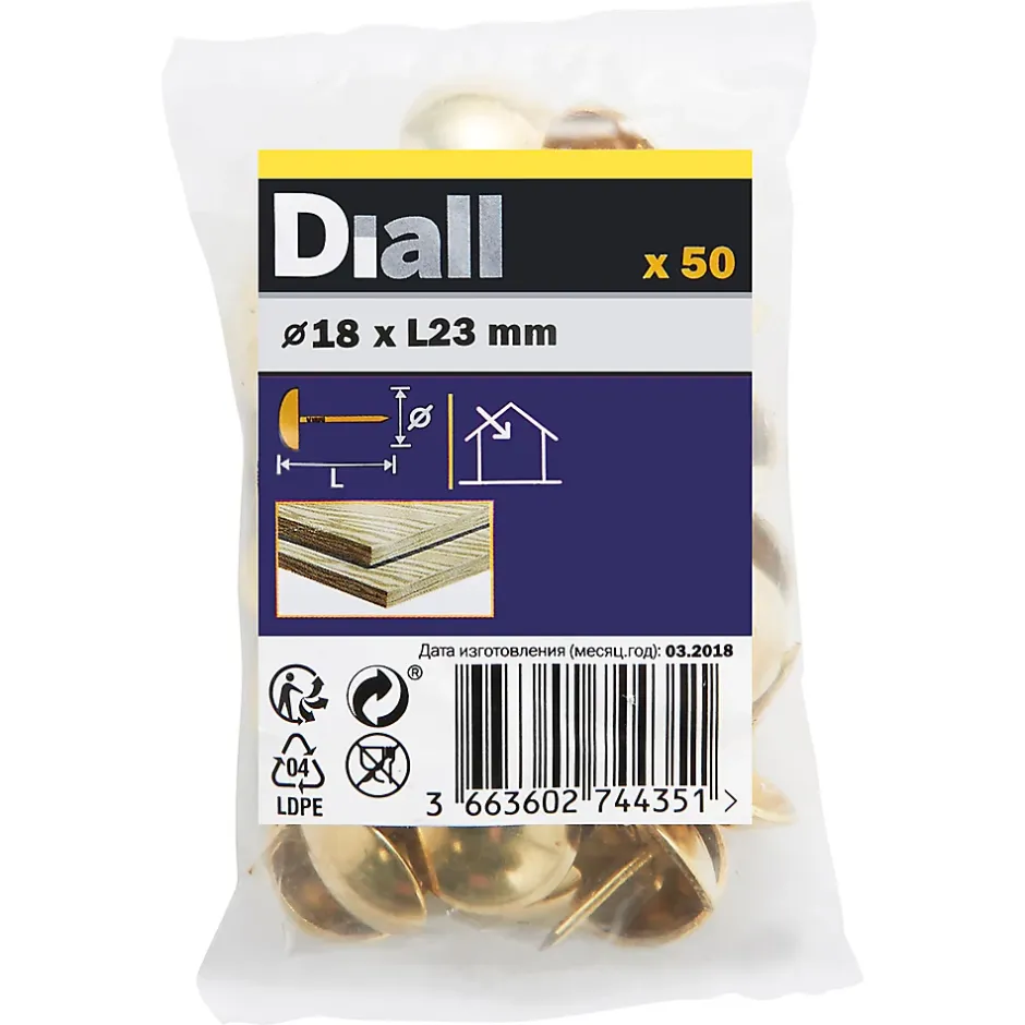 Les 50 clous tapissiers plaqués en laiton de ce pack sont fabriqués à partir d’acier. Ils mesurent 18 mm de longueur. Recommandés pour la section transversale des applications générales de menuiserie, telles que des travaux de menuiserie pour fixer les revêtements de meubles. Ils sont idéaux pour tout un éventail de projets de bricolage.