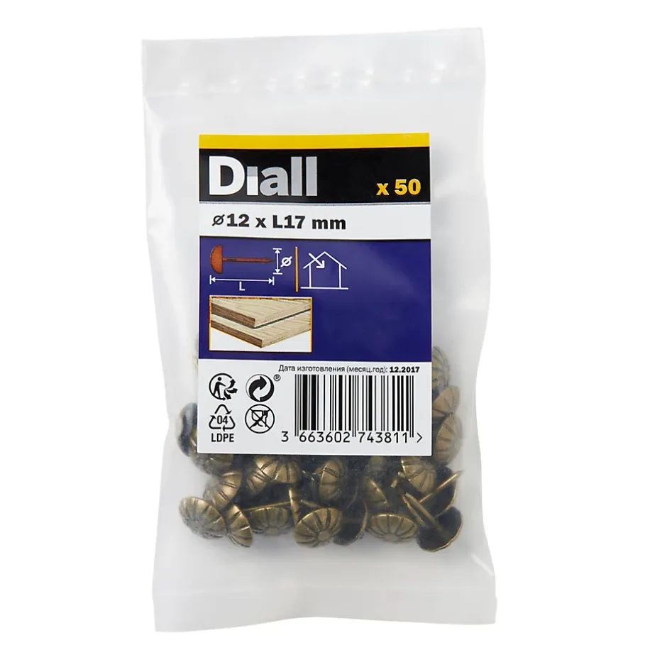 Les 50 clous tapissiers de ce pack sont fabriqués à partir de bronze. Ils mesurent 12 mm de longueur. Recommandés pour la section transversale des applications générales de menuiserie, telles que des travaux de menuiserie pour fixer les revêtements de meubles. Ils sont idéaux pour tout un éventail de projets de bricolage.