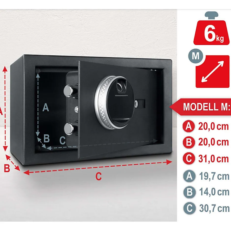 Coffre-fort pour meublesLe coffre-fort électronique pour meubles offre le plus haut niveau de protection pour vos objets de valeur. Le coffre-fort peut être facilement déverrouillé avec une empreinte digitale ou un code numérique. De plus, 2 clés d’urgence sont incluses avec lesquelles vous pouvez également ouvrir le coffre-fort manuellement. Après le déverrouillage, la porte du coffre-fort peut être facilement ouverte à l’aide du bouton rotatif au fonctionnement fluide.Dimensions:Taille M – 31 x 20 x 20 cm (L x H x P)Intérieur spacieux avec tapis en feutre pour protéger contre les rayuresFonctionnalités de sécurité-Stockage jusqu’à 99 empreintes digitales-Code numérique de 4 à 8 chiffres-2 clés de secours pour ouverture manuelle-Porte en acier massif (4 mm d’épaisseur) avec 2 ou 3 pênes de verrouillage solides-Élément de commande LCD numérique avec signal acoustiqueFonctionne sur piles-Fonctionne avec 4 piles AA-Jusqu’à 700 utilisations par batterieFacile à manipuler et à assembler-Bouton à fonctionnement fluide pour ouvrir la porte-Éclairage intérieur pour une meilleure vue d’ensemble-Matériel de pré-perçage et de montage pour montage mural ou dans une armoire-Quatre pieds antidérapants pour un maintien sûrHaute qualité-Acier massif pour une protection optimale- Fonctions de sécurité faciles à utiliser et fiables- Intérieur avec tapis en feutre pour protéger les objets de valeurSupport client et SAV en Français – Pas de livraison dans le DOM TOM et la Corse.