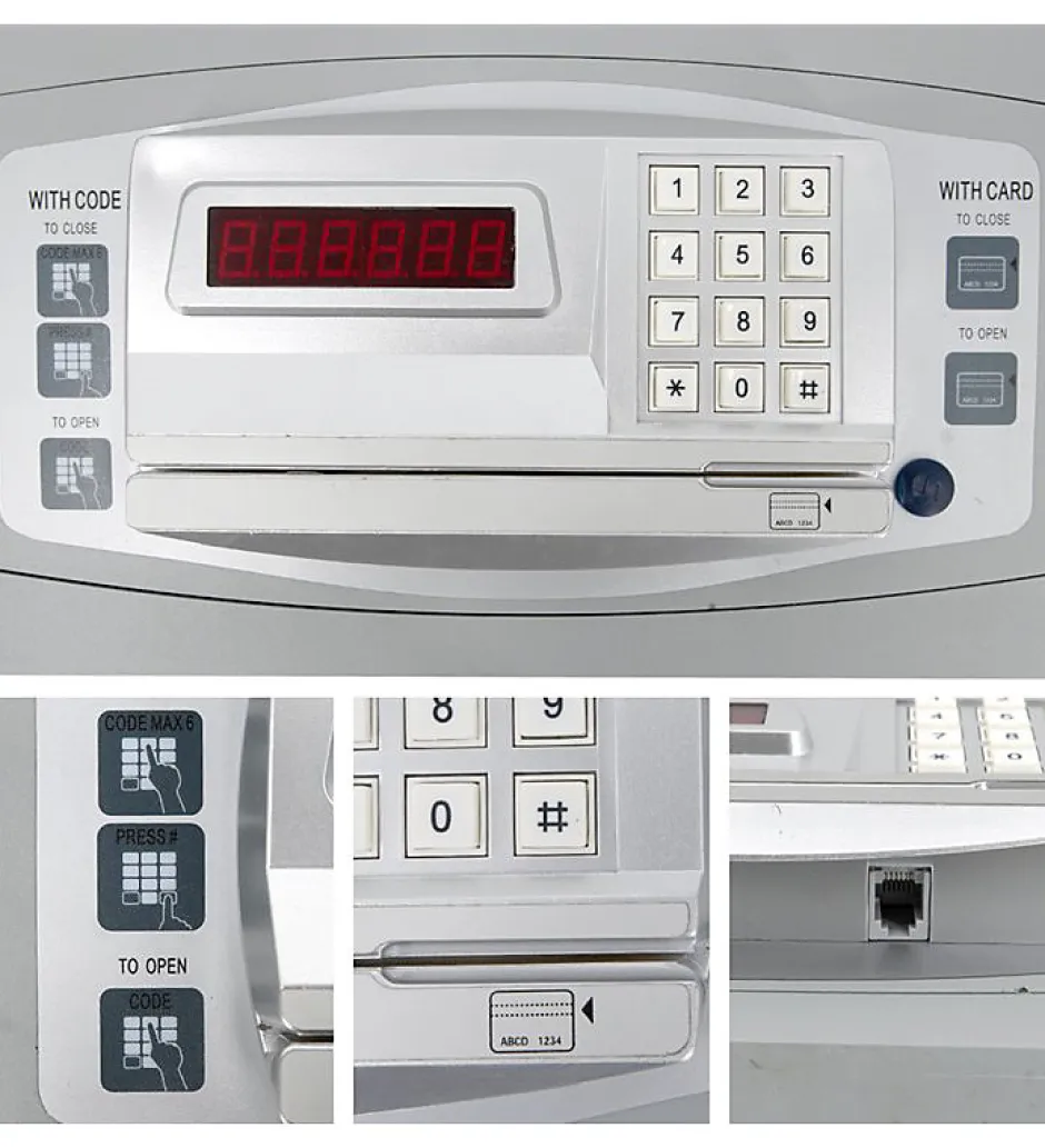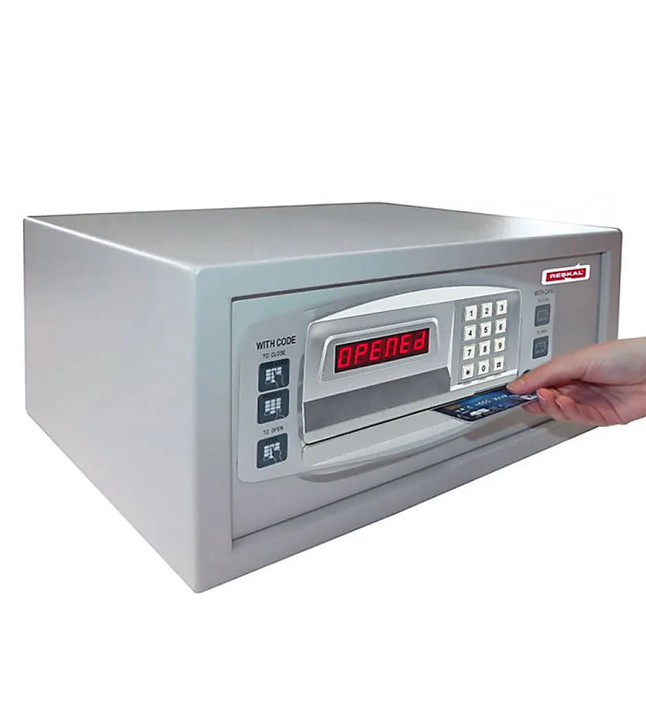 Tout ce qu’il faut savoir sur le coffre-fort d’hôtel Reskal SMC2 – 28. LCaractéristiques principales du coffre à carte magnétique:- Marque : Reskal- Capacité : 28. L- Matière : Acier- Serrure électronique (3 à 6 chiffres, jusqu’à 6 utilisateurs)- Serrure à carte magnétique- Épaisseur : Porte 5 mm, paroi 2 mm- Matériel de fixation : InclusDimensions : Extérieures (Hx. Lx. P) : 230x430x360 mmIntérieures (Hx. Lx. P) : 210x425x310 mmDescription du coffre d’hotel 28. L :Le coffre-fort Reskal SMC2 est idéal pour sécuriser vos objets de valeur dans un hôtel, un bureau ou à domicile.Il combine une serrure électronique et une serrure à carte magnétique pour une flexibilité d?utilisation.Compact, robuste et livré avec du matériel de fixation, il offre une protection fiable et pratique pour vos biens.