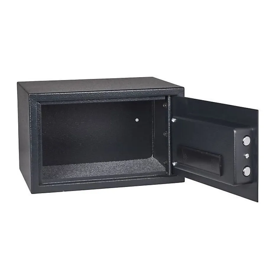 Sécurité renforcée pour vos objets de valeurLe coffre-fort MASTER LOCK X041ML 11L offre une protection optimale grâce à sa construction en acier solide et sa serrure électronique programmable. Doté d’une porte résistante au forcing, il sécurise efficacement bijoux, documents sensibles et appareils électroniques contre le vol.Technologie électronique intuitiveÉquipé d’un verrouillage numérique personnalisable avec code à 4 chiffres, ce coffre-fort permet un accès rapide tout en conservant une clé de secours intégrée. Son système électronique fiable fonctionne avec 4 piles AA (non incluses) pour une utilisation sans contrainte.Design compact et organisation pratiqueAvec son format moyen de 11,6 litres, ce coffre-fort s’intègre discrètement dans tout intérieur tout offrant un rangement sécurisé. L’intérieur rembourré personnalisable protège vos objets contre les chocs et les rayures pendant le stockage.Polyvalence d’utilisationIdéal pour les particuliers comme les professionnels, ce modèle répond aux besoins de sécurisation des papiers d’identité, espèces, clés USB et petits appareils électroniques. Son installation rapide convient aussi bien aux bureaux qu’aux chambres ou placards.MASTERLOCK, marque américaine leader en solutions de sécurité depuis 1921, allie innovation technologique et robustesse légendaire. Reconnue mondialement pour ses systèmes de verrouillage haut de gamme, elle équipe aussi bien les particuliers que les professionnels exigeants.Porte en acier anti-effraction avec verrous latéraux renforcésCombinaison numérique réinitialisable et clé de secours incluseIntérieur rembourré personnalisable pour protection optimaleDimensions compactes (11,6L) adaptées aux espaces réduitsGarantie MASTERLOCK pour une sécurité certifiée