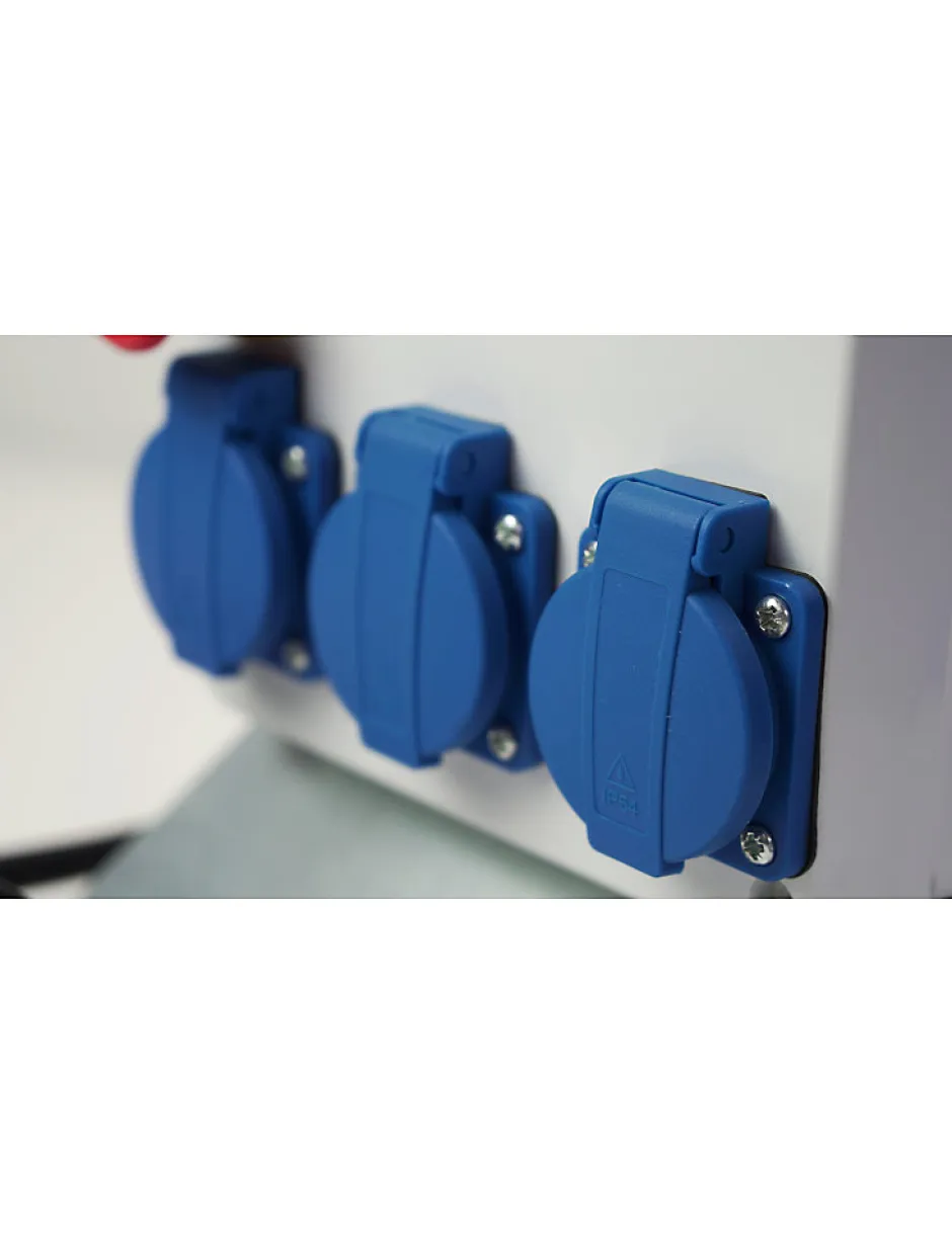 - Coffret de distribution sur prises 16A domestiques avec protections et véritable arrêt d’urgence sur bobine MX