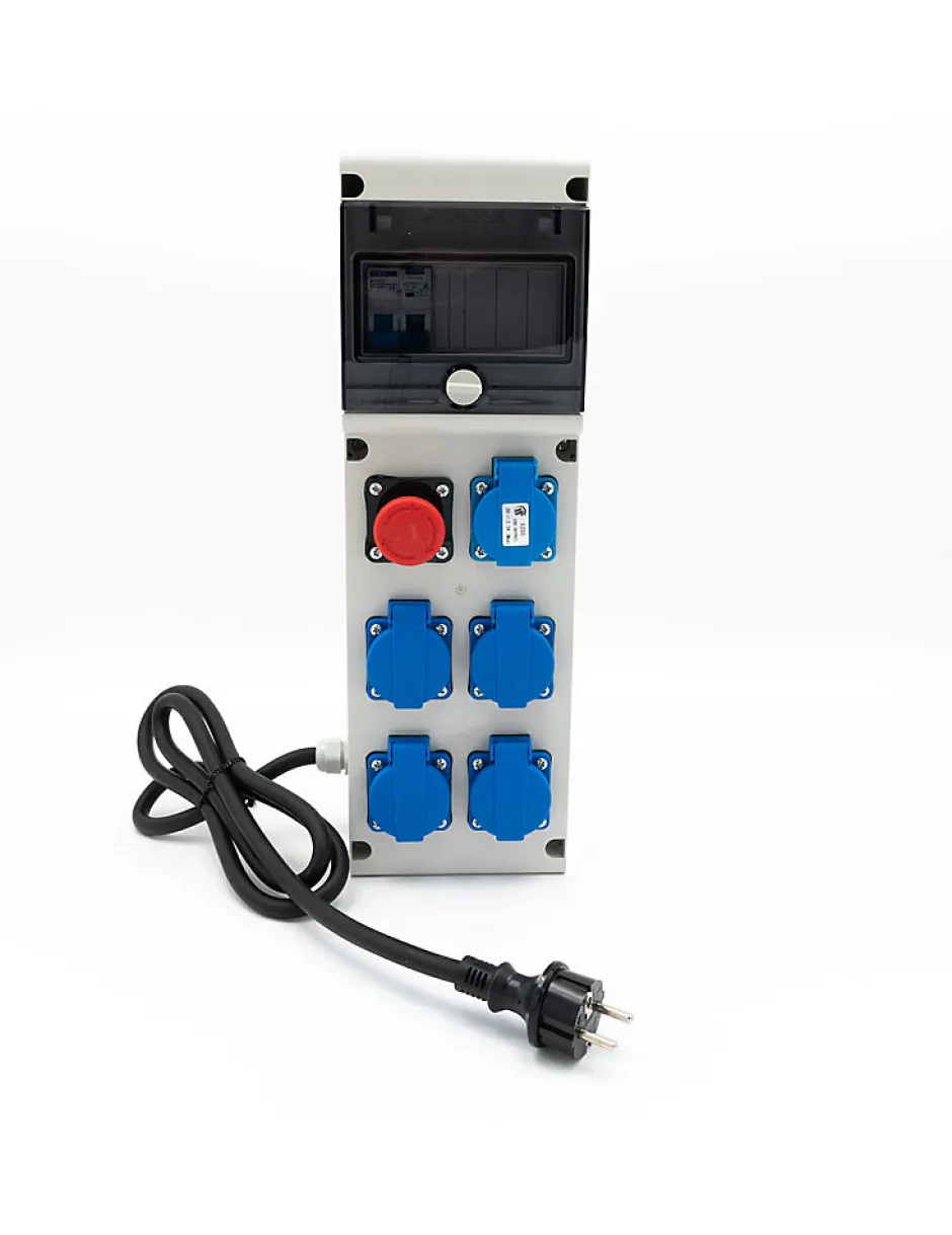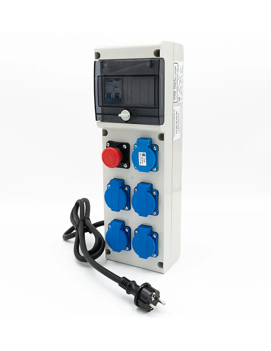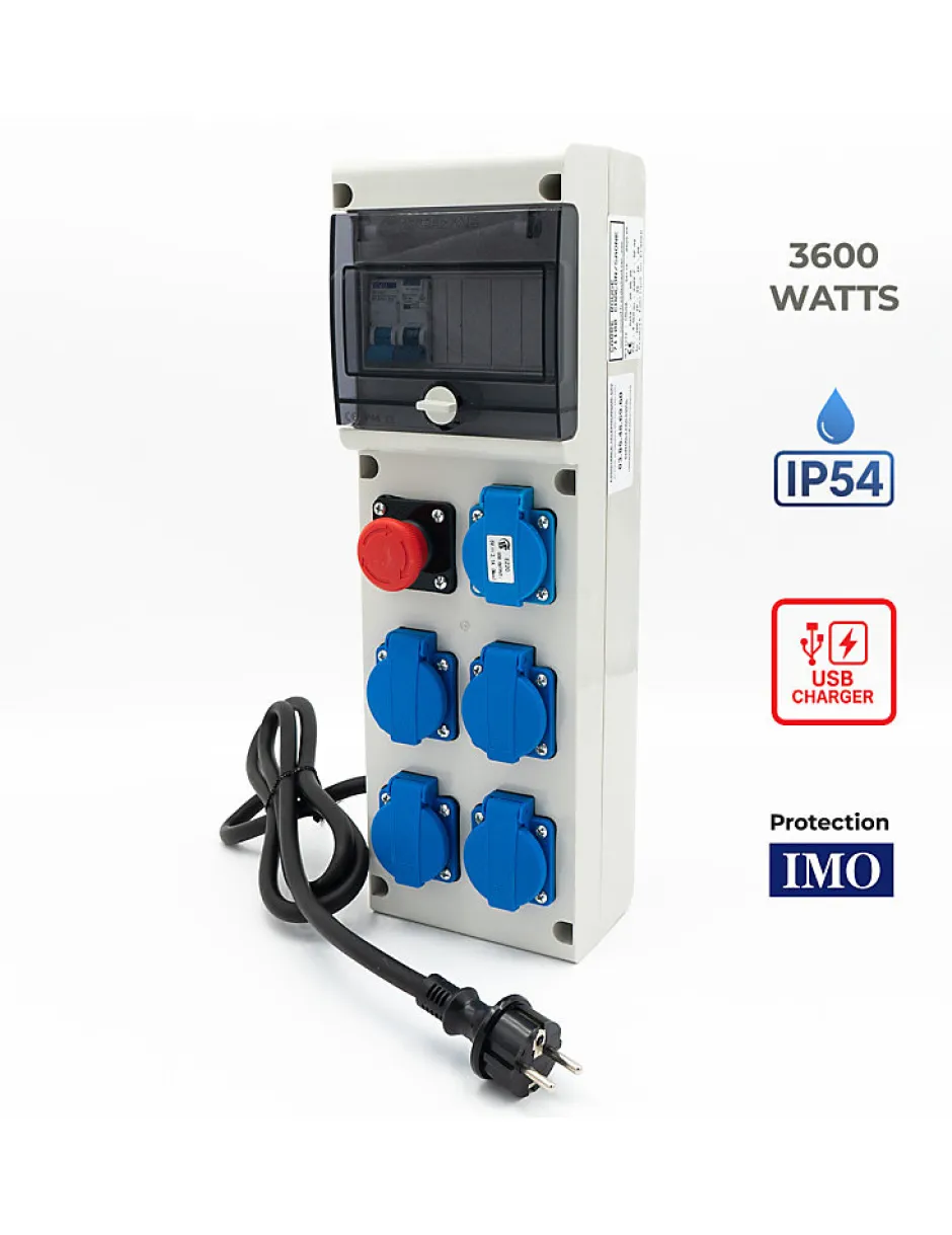 – enveloppe ABS IP 66 IK08 6 modules- 410x436x150 avec poignée- 1 disjoncteur différentiel en tête P/N – 16A – 30 mA TAC- 1 arrêt d’urgence type coup de poing sur bobine MX- 4 prises NF C 16A P/N/T IP54- 1 prise double USB 1.5A- 1 Alimentation à impulsions 18W; 12VDC; 1,5A; 180÷264VAC- 1 bornier de terre-1 cordon d’alimentation HO7RNF 3G2.5² 180cm avec fiche mâle 2P+T 16A – coffret electrique de chantier Coffret de chantier monophasé avec poignée , arrêt d’urgence , 4 PC NF 230V , 1 prise double USB et 1 cordon d’alimentation avec fiche mâle , livré en 24H. Coffret de chantier 4 PC mono + prise USB , complet avec cordon : Coffret monophasé, . Coffret de chantier équipée de 4 prises monophasées 230V + 1 prise double USB