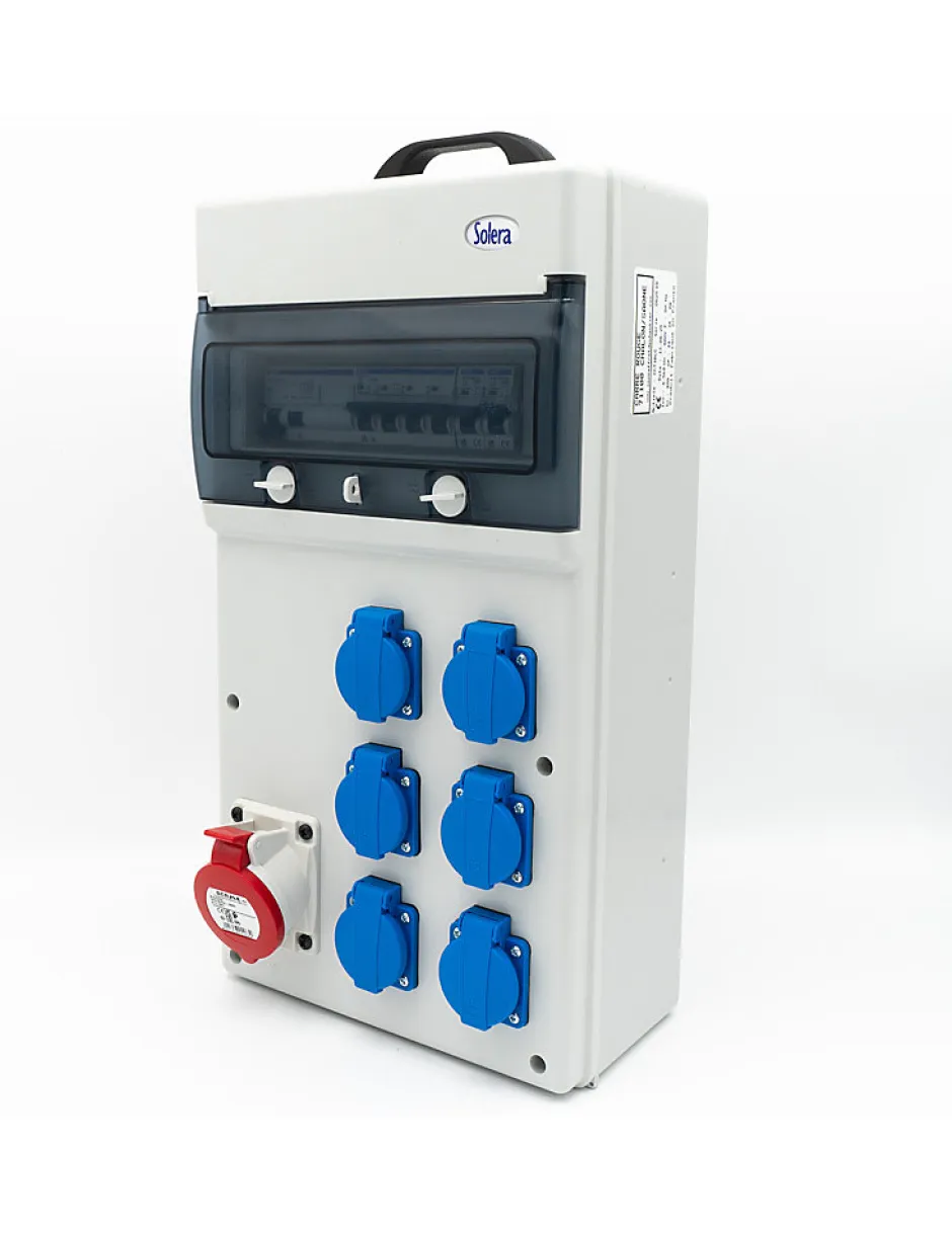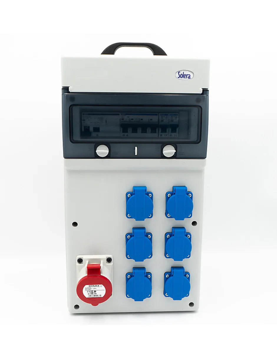 Coffret de prises 400 Volts de 6 prises mono et 1 prise trip 32A , livré sous 24 heures