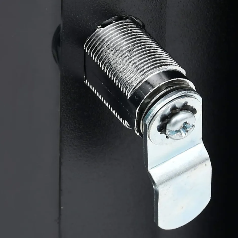 - Porte avant en verre trempé verrouillable avec serrure et clé incluses pour une sécurité accrue.
