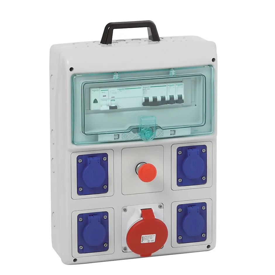 Coffret électrique de chantier pré-équipé et pré-câblé 4 prises 16A + 1 prise 3 pôles + terre 16A Schneider Electric Kaedra