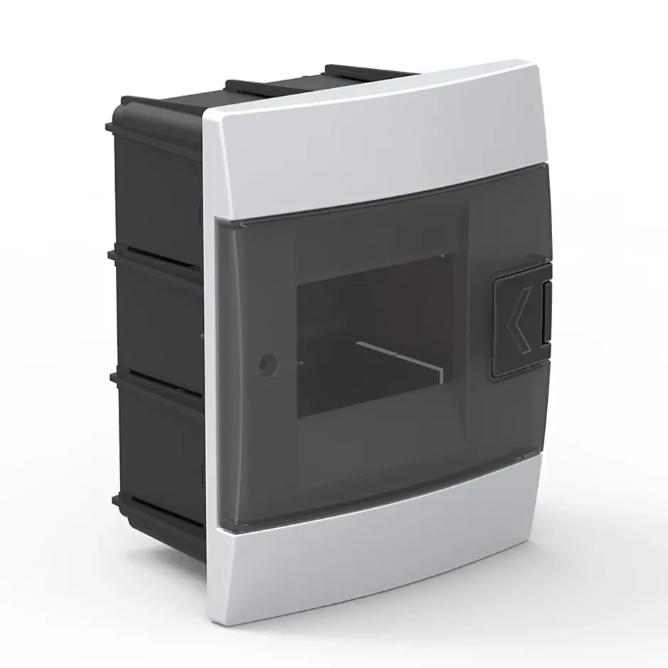 - Construction encastrée – Les tableaux de distribution de ce type sont conçus pour être montés à l’intérieur d’un mur. Ils nécessitent de découper un espace approprié dans le mur ou une autre surface, ce qui rend l’appareil moins visible et donne un aspect esthétique à l’ensemble de l’installation électrique.