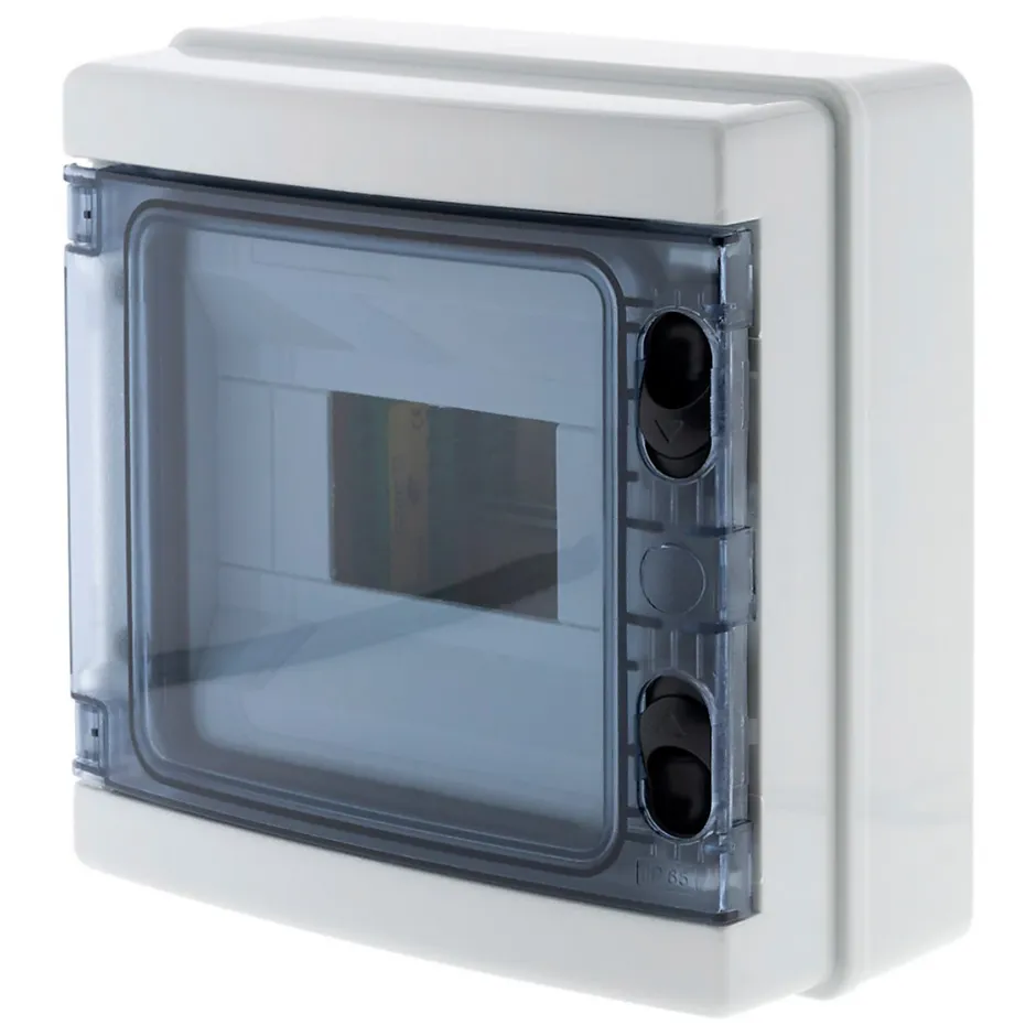 Coffret électrique étanche. Couleur(s) : blanc. Nombre de modules : 4, 8 ou 12. Indice de protection : IP65. Norme(s) : CE
