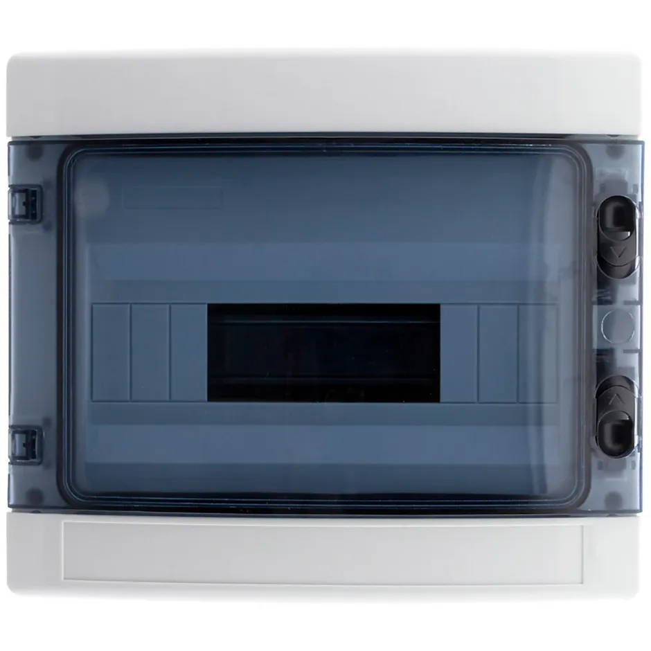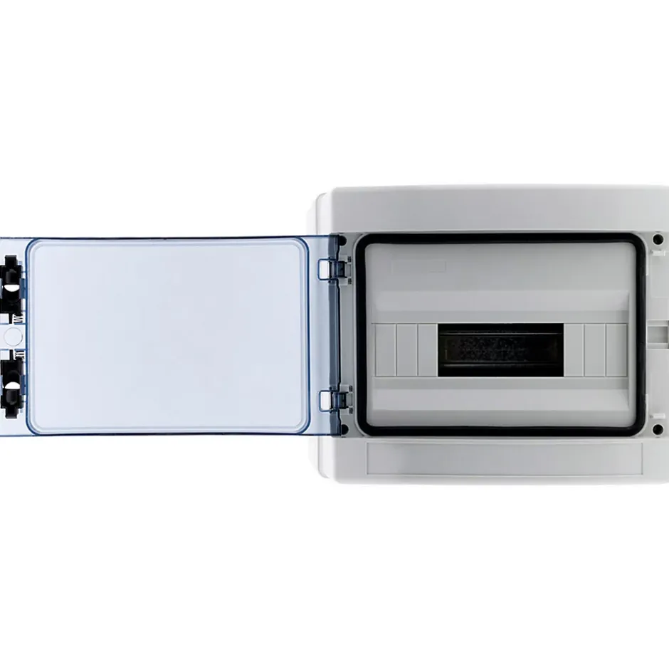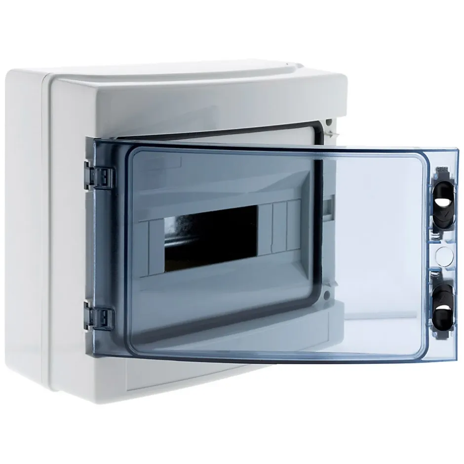 Coffret électrique étanche. Couleur(s) : blanc. Nombre de modules : 4, 8 ou 12. Indice de protection : IP65. Norme(s) : CE