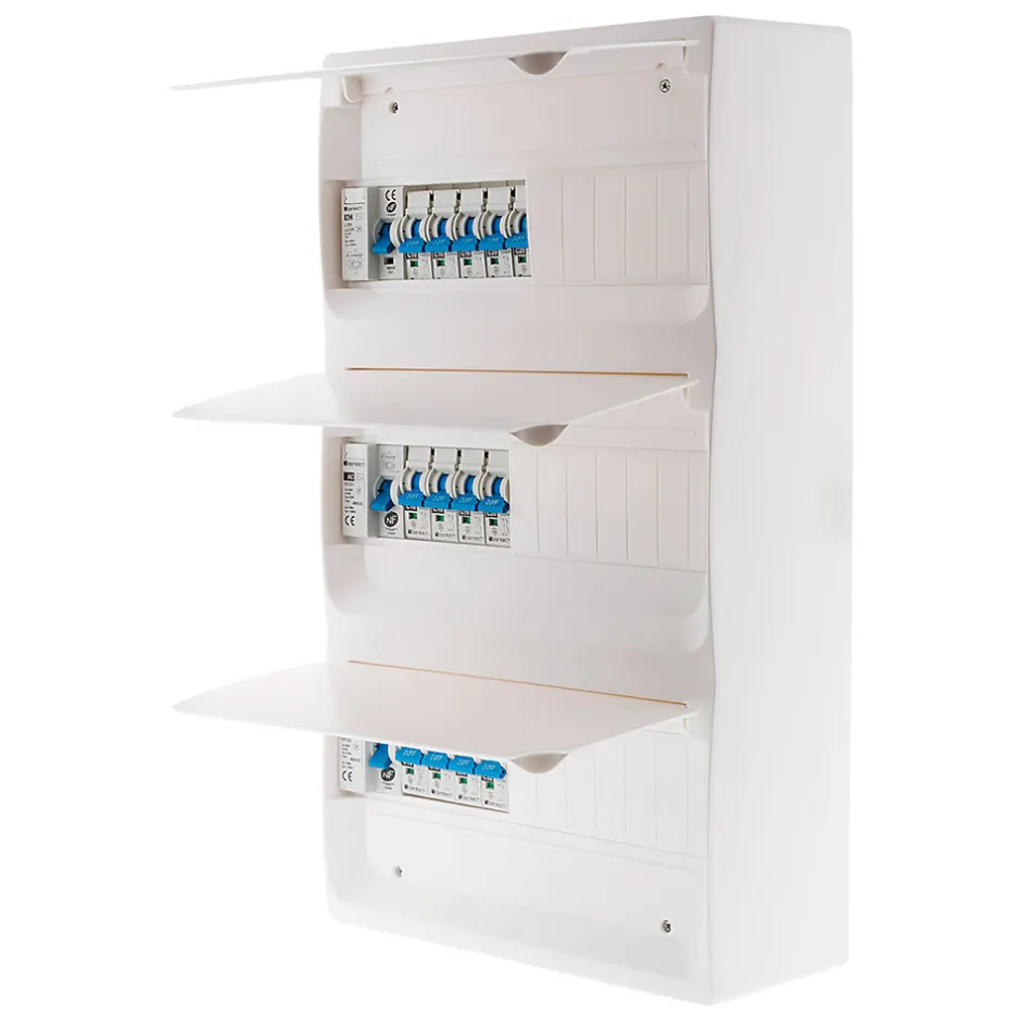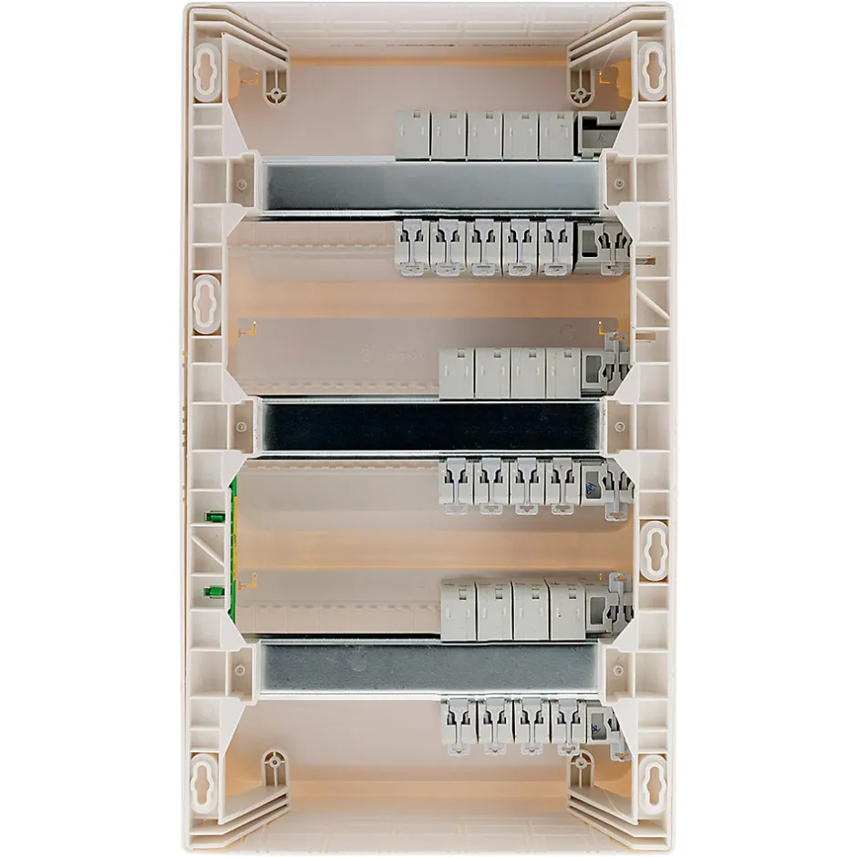Caractéristiques du coffret électrique T5 – 39 modules + 13 disjoncteurs + 3 interrupteurs différentiels – Zenitech :Modèle : coffret électrique T5Compatible GTLCertifié NFC 15-100Idéal pour les logements T5Inclus: obturateurs, avec bornier de terre, portes, étiquettes de repérage des circuits & pictogrammesLivré avec 13 disjoncteurs : 3x10A5x16A4x20A1x32ALivré avec 3 interrupteurs différentiels :1x 30mA 63A Type AC1x 30mA 40A Type AC1x 30mA 63A Type ALe coffret électrique T5 est une solution complète et prête à l’emploi, idéale pour les installations électriques des logements conformes à la norme T5 !Compatible avec les Goulottes Techniques de Logement (GTL) et certifié NFC 15-100, il garantit une sécurité optimale et une installation aux normes françaises.Ce coffret inclut tous les éléments nécessaires pour une gestion simplifiée des circuits électriques, comme des obturateurs, un bornier de terre, des portes, des étiquettes de repérage des circuits et des pictogrammes pour un marquage clair.Il est livré avec 13 disjoncteurs préinstallés (3x10A, 5x16A, 4x20A, 1x32A) et 3 interrupteurs différentiels (1x 30mA 63A Type AC, 1x 30mA 40A Type AC, 1x 30mA 63A Type A) pour une protection efficace des circuits et des utilisateurs. Ce coffret est une solution fiable et pratique pour gérer et sécuriser l’alimentation électrique dans un logement.