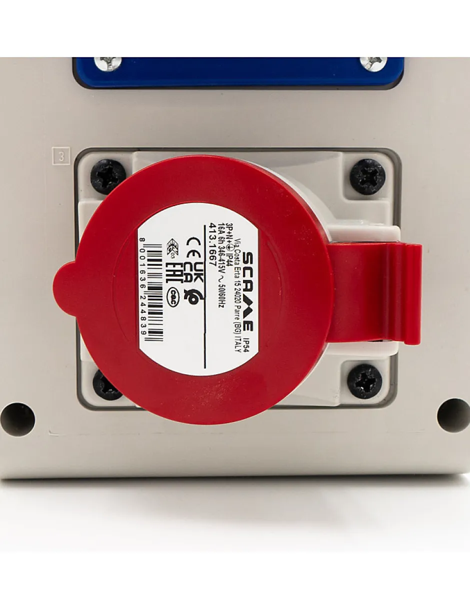 Comptage tarif bleu 10/30A triphasé avec coffret prises accoléDétail : -1 coffret de comptage tarif bleu 10/30A triphasé– 1 coffret PVC dim 440x135x95 – IP55 – IK08- 1 disjoncteur modulaire 4 pôles courbe C 16A 4.5kA- 1 socle incl. 16A 3P+N+T CEI IP44- 1 disjoncteur modulaire P/N courbe C 16A 4.5kA- 2 socles 16A 250VAC – 2P+T > IP44 – coffret electrique de chantier Compteur de chantier avec 1 prise 400V et 2 prises 230V pour brancher tout votre outillage. Coffret de chantier triphasé 6/18KW équipé de prises extérieures : Triphasé 6/18KW, . Coffret de chantier tri 6/18KW avec prises extérieures