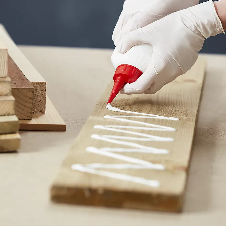 - Préparation de la surface : Les surfaces à coller doivent être bien ajustées, propres, sèches et exemptes de poussière et de graisse. Un léger ponçage des surfaces lisses et non poreuses peut améliorer l’adhérence. Il est recommandé d’effectuer au préalable un test d’adhérence et de compatibilité sur chaque surface.