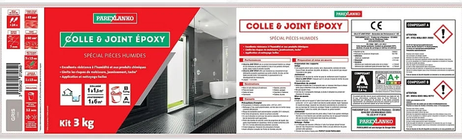 La colle et joint époxy est un produit bi-composant idéal pour la réalisation de joints de 1 à 15 mm en pièces humides car il résiste aux bactéries et moisissures. Il résiste également aux agressions chimiques et mécaniques intenses. Application et nettoyage faciles. Finition lisse et fine.