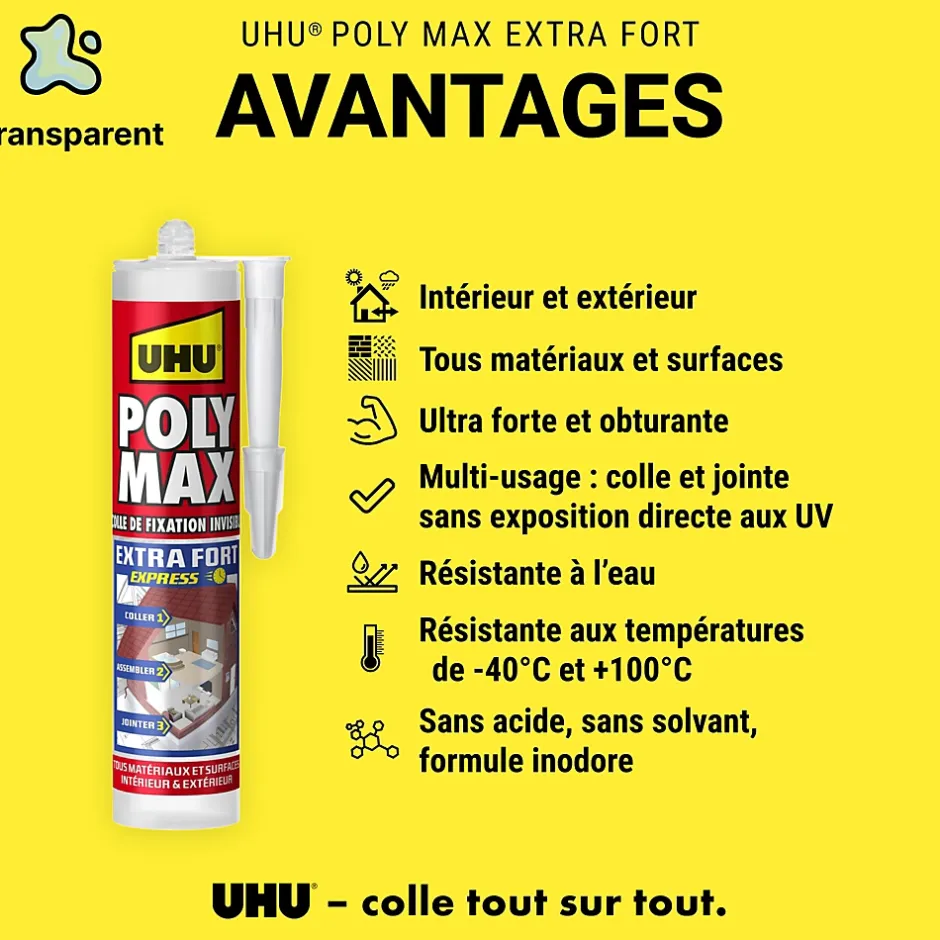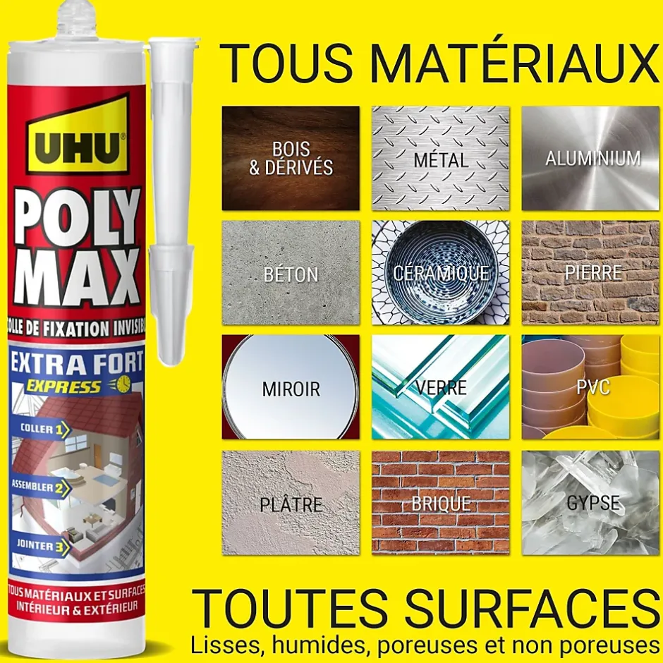 - Poly Max, la gamme UHU pour coller, jointer, reboucher tous les matériaux grâce à la technologie MSP