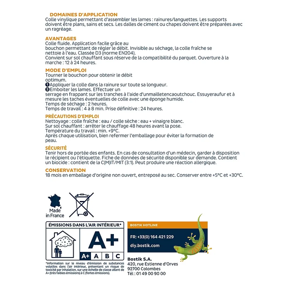 Bostik colle parquets pose flottante est idéale pour assembler les rainures et languettes des parquets contrecollés et sols stratifiés.