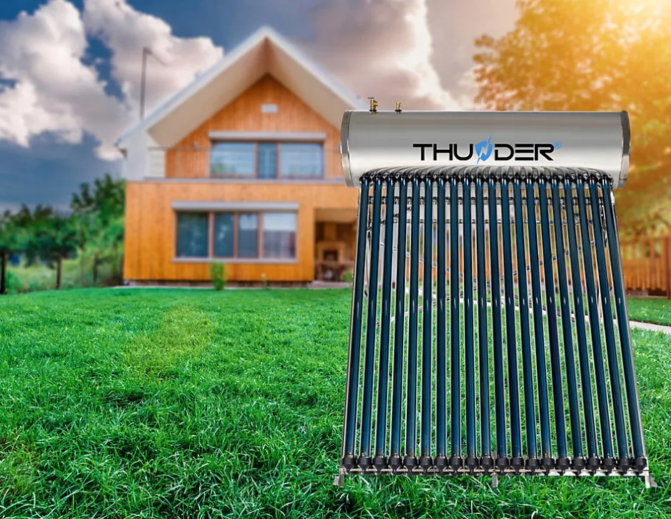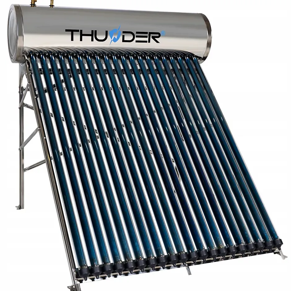 Efficace collecteur pressurisé THUNDER 200L avec 20 tubes sousvide, réservoir en acier inoxydable et intégrée résistance 1500W. Permet économiser énergie, assurant chaude eau pendant tout an.
