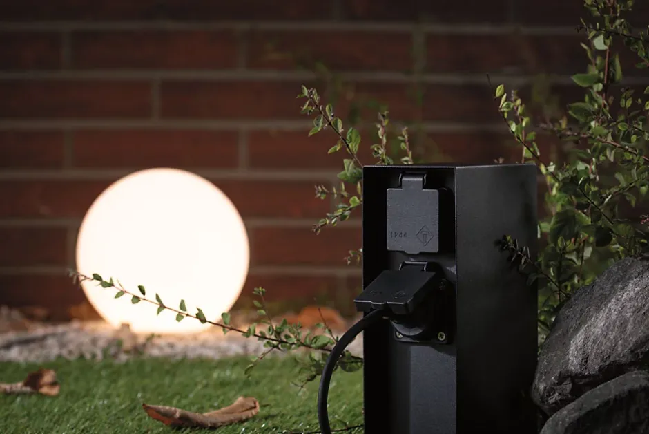 La colonne de prises avec minuterie alimente l’espace extérieur en électricité. La protection anti-projections d’eau IP44 et les prises de terre en font un outil parfait pour commander l’éclairage de jardin. Les deux prises réagissent à la minuterie réglée à l’avant.