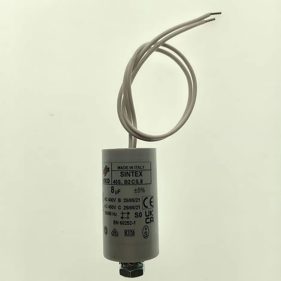 Condensateur (condo) à câble 8 ?F (microfarad) pour moteur 220 – 240 Volts, pour systèmes d’automatismes de portails battants ou coulissants. Compatibles toutes marques de moteurs en 230 Volts
