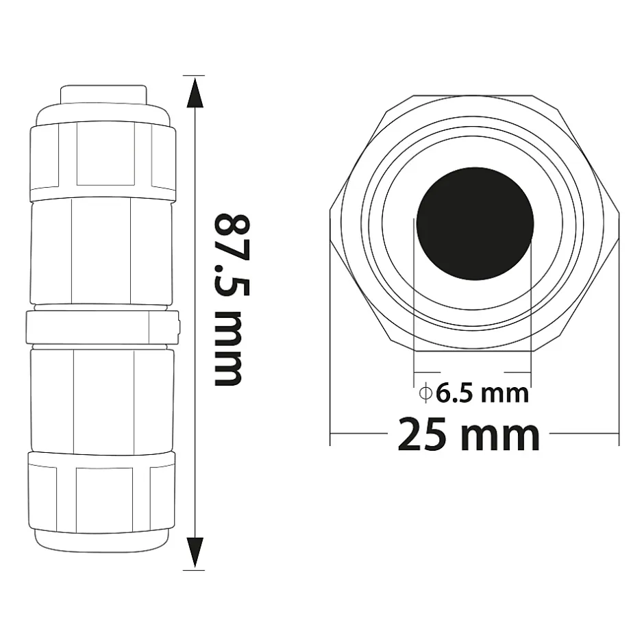 Le connecteur de câble étanche IP68 3 fils noir permet le raccordement de câbles électriques tout en offrant une protection élevée à l’eau et la poussière. Idéal pour tout projet nécessitant des connexions et raccordements électriques à l’extérieur. (éclairage piscine, terrasse, jardin etc.) Grâce à son indice de protection IP68, vos connexions et raccordements électriques sont totalement protégés contre la poussière et l’eau. Le connecteur de câble étanche IP68 3 fils noir supporte une tension jusqu’à 250V avec une intensité Max de 16A. Ce connecteur peut recevoir un câble de diamètre allant entre 6.5 et 11mm. Les bornes internes permettent le raccordement de 3 pôles (Phase, neutre, terre) avec des câbles de section 0.5mm² à 2.5mm². Les bornes sont automatiques avec connexions sans vis. L’indice de protection IP68 assure que le produit est : Etanchéité totale à la poussière Protection contre l’immersion prolongée Les produits dotés d’un indice de protection IP68 résistent aux intempéries et conviennent donc à une installation à l’extérieur. Ce connecteur de câble linéaire est également disponible en forme de T. Produit conforme à la norme CE, à la directive RoHS et DEEE. Nous sommes à votre disposition pour répondre à toutes vos questions.
