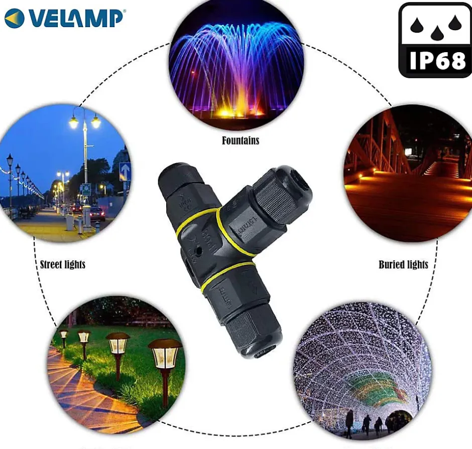 Excellent matériau : le connecteur est fabriqué en nylon PA66 + caoutchouc silicone de haute résistance, conçu pour l’extérieur: maison, jardin, ferme… Convient pour l’éclairage extérieur avec connexion rapide et câblage externe. Design professionnel étanche, indice d’étanchéité IP68 et ignifuge, fonction anti-poussière, fonction antichoc, peut être utilisé sous le soleil ou les jours de pluie. Connexion câble : pour câbles Dimensions : H05RN-F 3G1,5 mm2 max. Connecteur en T, connexion de câble à 2 ou 3 broches, idéal pour un raccordement rapide pour l’éclairage extérieur et le câblage extérieur. Courant max : 24A et 450V. Température d’utilisation : -30 °C à +80 °C. Installation simple : sans outils d’installation particuliers: un tournevis suffit. Autres applications dans l’ingénierie côtière, fluviale, maritime ou sous-marine, ingénierie souterraine, ingénierie minière, énergie éolienne solaire, chauffe-eau solaire, diverses machines et équipements.