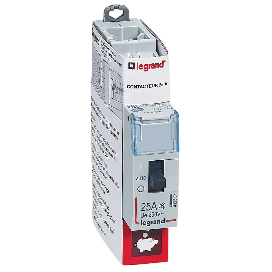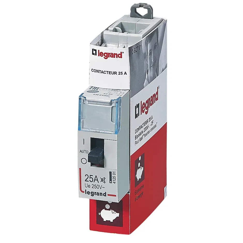 Ce contacteur bipolaire jour/nuit 25 A Legrand permet de mettre en marche automatiquement pendant les heures creuses de l’EDF le lave-linge, le lave-vaisselle, le chauffe-eau, etc.