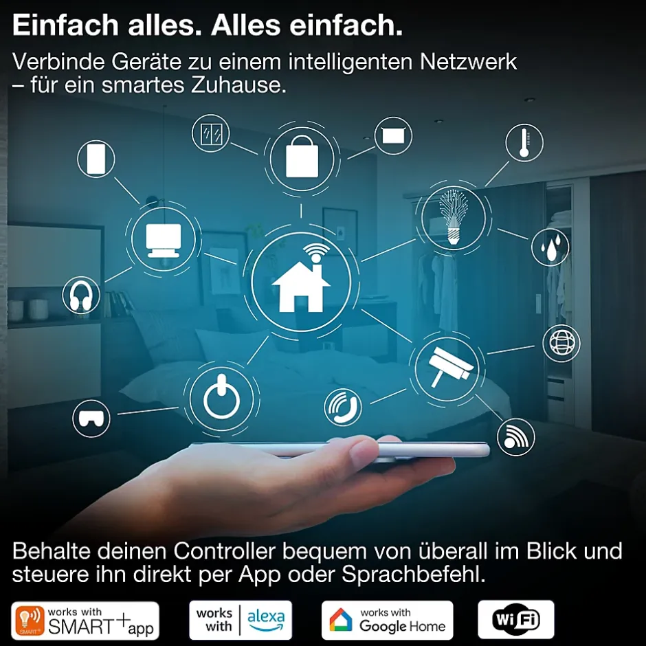 Ce programmateur d’arrosage OSRAM SMART+ WiFi, doté d’une protection IP55, offre un arrosage intelligent grâce à une cellule solaire et une recharge USB-C. Grâce à son compteur d’eau intégré et à son application de contrôle, il automatise l’arrosage de votre jardin pour les filetages de 1,9 cm et 2,5 cm. Compatible avec Alexa et Google Home, il offre deux modes de fonctionnement et l’intégration de capteurs en option. Idéal pour les espaces extérieurs domotiques.