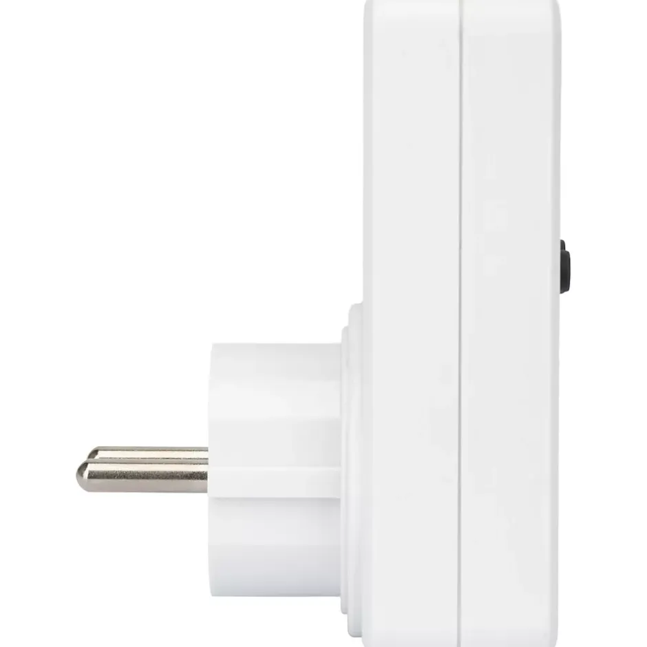 Contrôleur de consommation électrique. Couleur(s) : blanc. Intensité : 16A. Alimentation : 230V-50Hz. Plage de tension : 200V à 276V. Plage de puissance jusqu’à 3680W. Affichage de consommation : 0 à 9999 kwh coût cumulé ou de 0 à 9999 €. 3 indicateurs : Quantité d’électricité cumulée en kilowatts par heure (kWh), Coût cumulé après renseignement du tarif en vigueur, Puissance effective de l’appareil connecté (W)