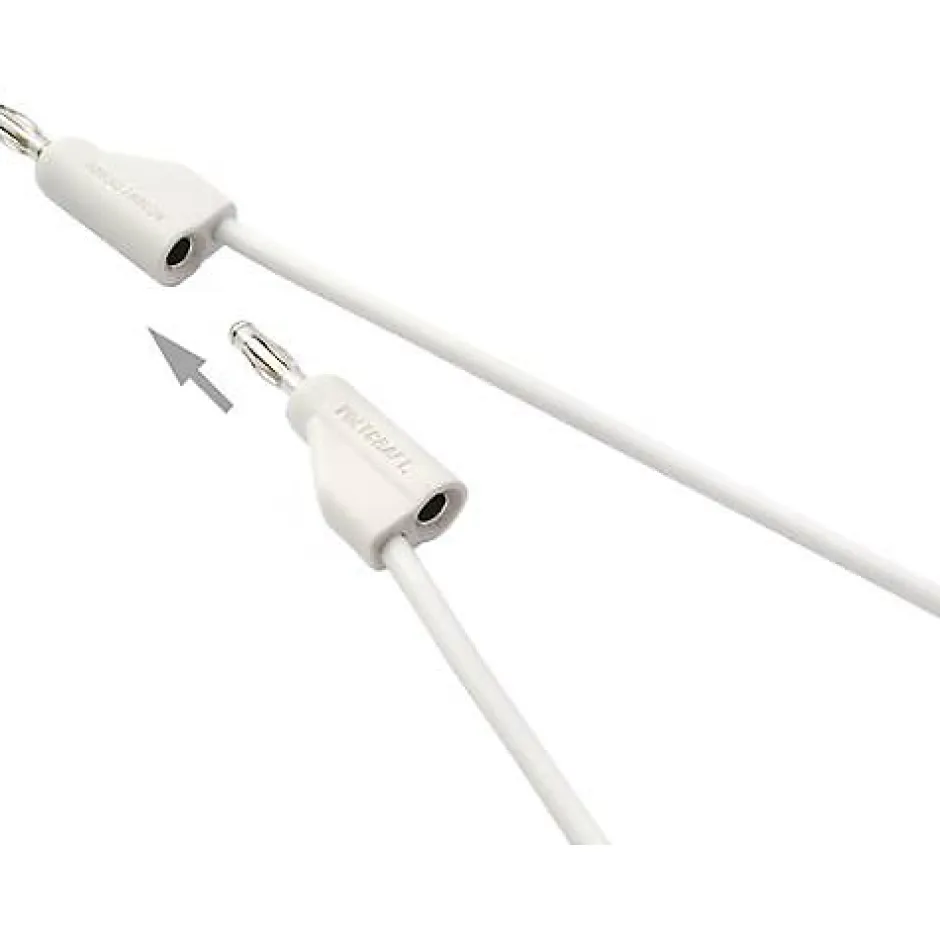 Cordon de mesure ultra‑flexible VOLTCRAFT MSB‑300, banane mâle 4 mm – banane mâle 4 mm, longueur 2,00 m. Isolation en silicone résistante à la chaleur, section 0,85 mm², courant nominal 10 A, tension nominale 30 V/AC et 60 V/DC. Fiches nickelées empilables 4 mm pour de nombreux cycles de branchement, fibres plastiques anti‑déchirure pour une meilleure résistance à la traction et une longue durée de vie. Couleur blanche, adapté aux mesures basse tension en laboratoire et à l’usage professionnel.
