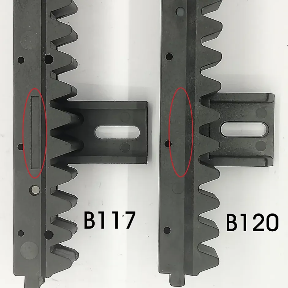 Crémaillère B120 vendue en barre de 50 cm pour motorisation de portail coulissant Ame en acier recouvert de nylon.Résiste mieux à la corrosion et est moins bruyante Si vous possédez un autre modèle de crémaillère, merci de nous contacter par mail sur : [email protected] nous envoyant une photo si possible. Ses crémaillères sont fournies depuis 07/2021 dans les kits. Modèle a vérifier avant achat