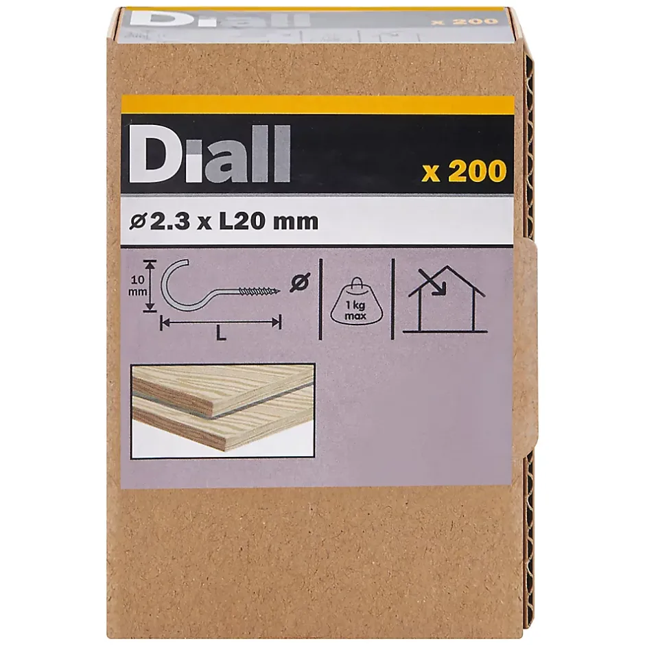 Crochet rond à visser en acier zingué 20×10 mm – 200 pièces