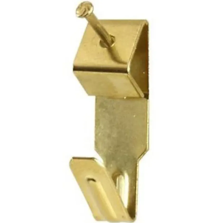 Lot de 20 crochets pour tableau en acier finition laiton, largeur 22 mm, montage par un trou avec clou inclus ; idéal pour fixer tableaux et cadres légers en orientation verticale, solide et discret.