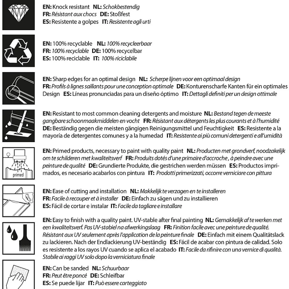 - Résistant aux UV uniquement après peinture. Une peinture extérieure adaptée est recommandée