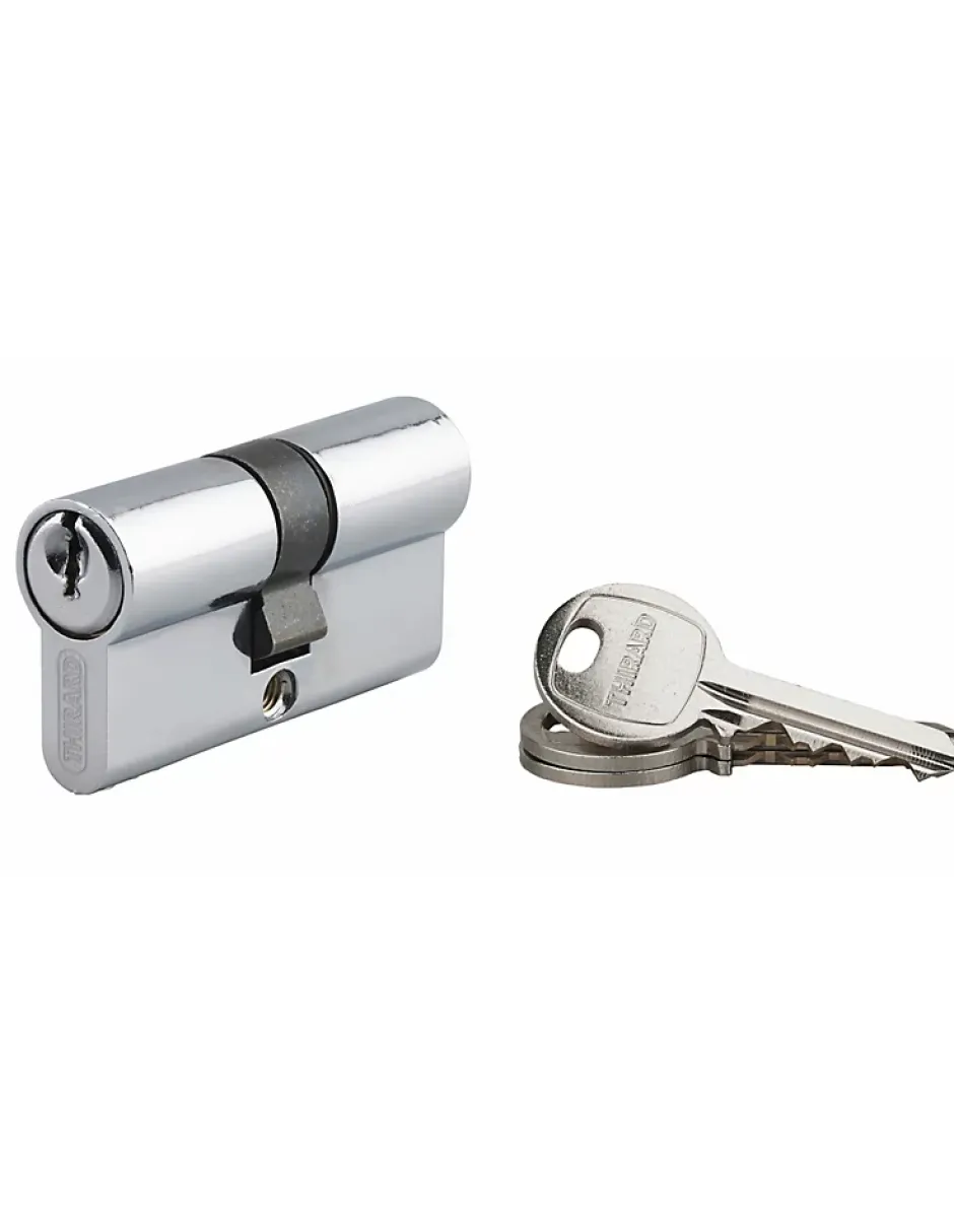 Profil européen en aluminium avec mécanisme à 5 goupilles et panneton anti-arrachement, fourni avec 3 clés crantées en acier nickelé. Conçu pour sécuriser portes d’entrée et équipements sur chantiers, ce cylindre Thirard s’adapte à la plupart des serrures et réduit le risque d’intrusion grâce à ses pièces renforcées. Disponible en plusieurs longueurs et variantes (demi-cylindre, cylindre à bouton, double entrée).