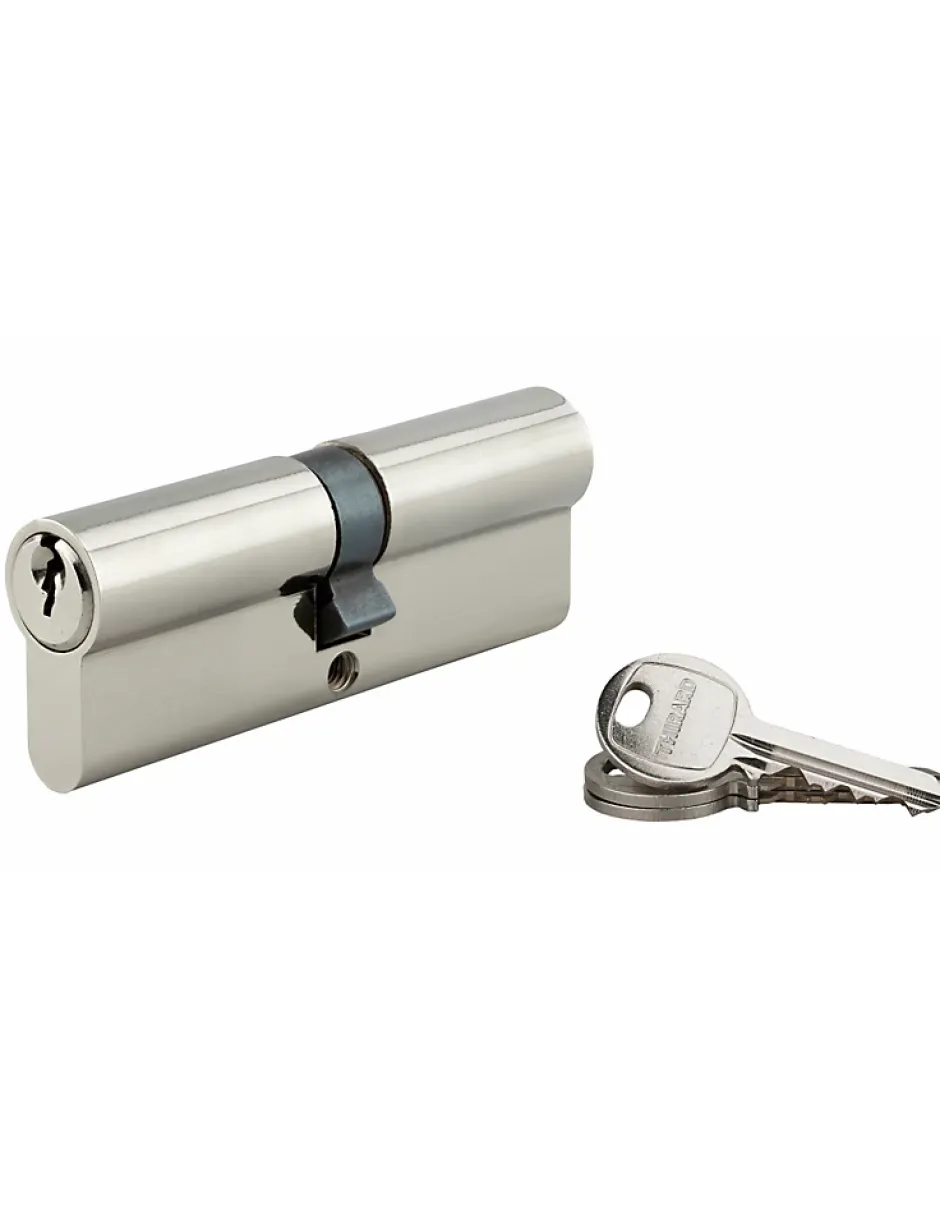 Profil européen laiton. Mécanisme à 5 goupilles. Panneton anti arrachement. 3 clés en acier nickelé. Vis 45mm